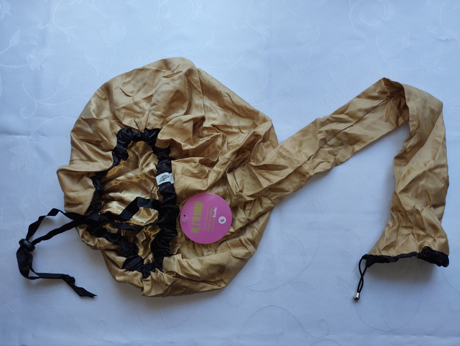 Satin diffuser cap. Saténový difuzér na sušenie kučeravých vlasov. Nepoužívaná, iba odbalená, takže vhodná aj ako darček.