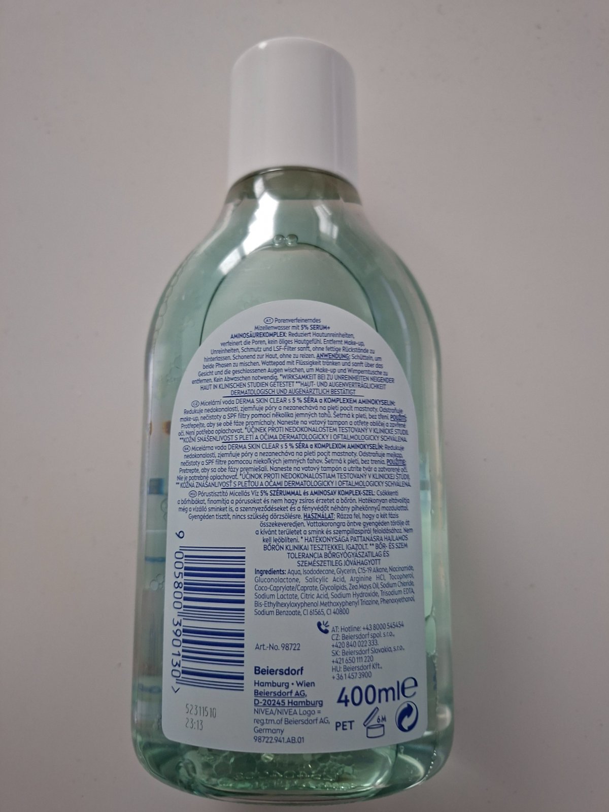 - micelárna čistiaca voda Nivea Derma Skin Clear 400ml