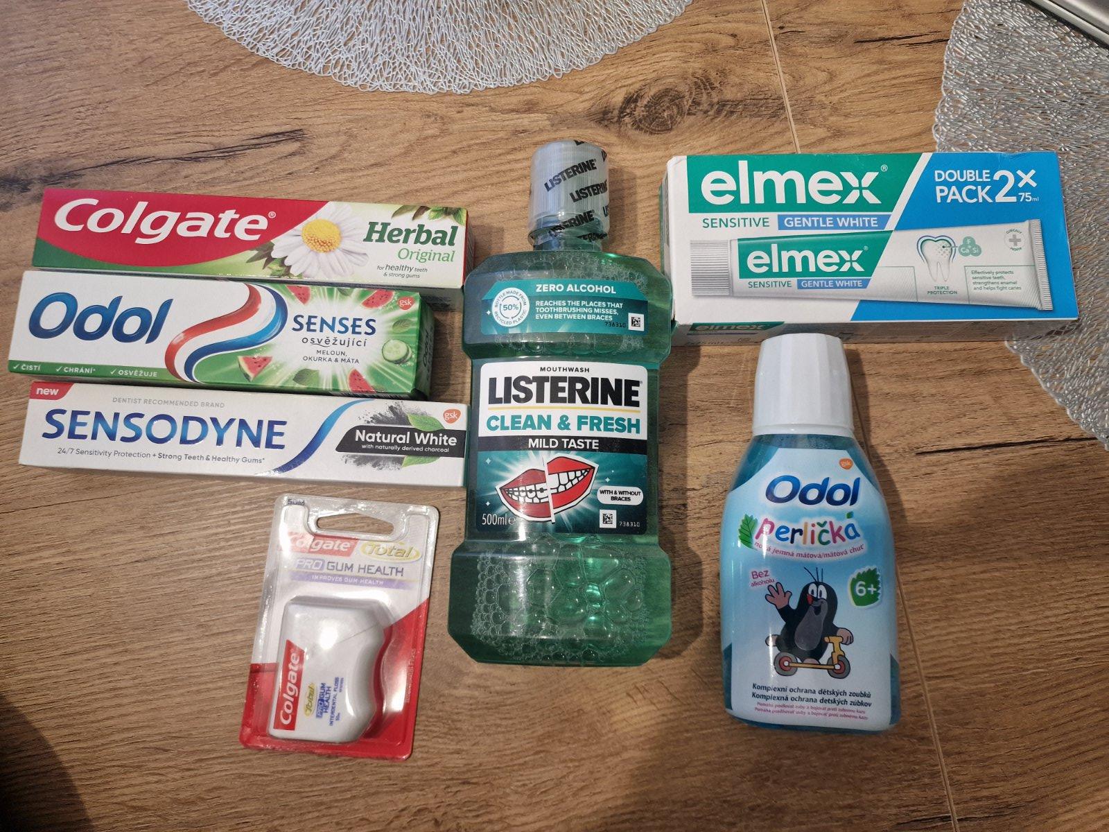 Rôzne druhy. Cena 1,40 (listerine 3,00€, elmex 2 balenie 4,oo€). Mám viac kusov. Odol a Sensodyne pasta už nie je.