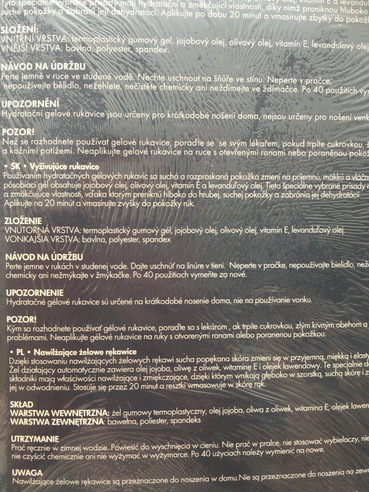• používaním gélových rukavíc a ponožiek sa suchá a popraskaná pokožka Vašich rúk a nôh zmení na príjemnú, hebkú a vláčnu