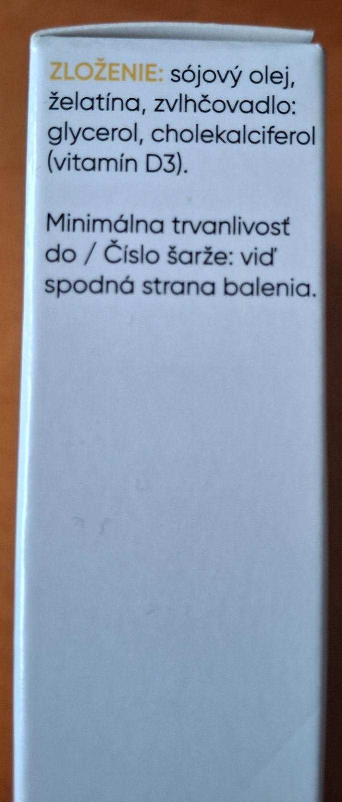 Výživový doplnok s vitamínom D3 ( v 1 kapsule 50 µg = 2000 IU; 1000 % referenčnej hodnoty denného príjmu), (skladom 1 ks), za 8,90 eur, plus poštovné.