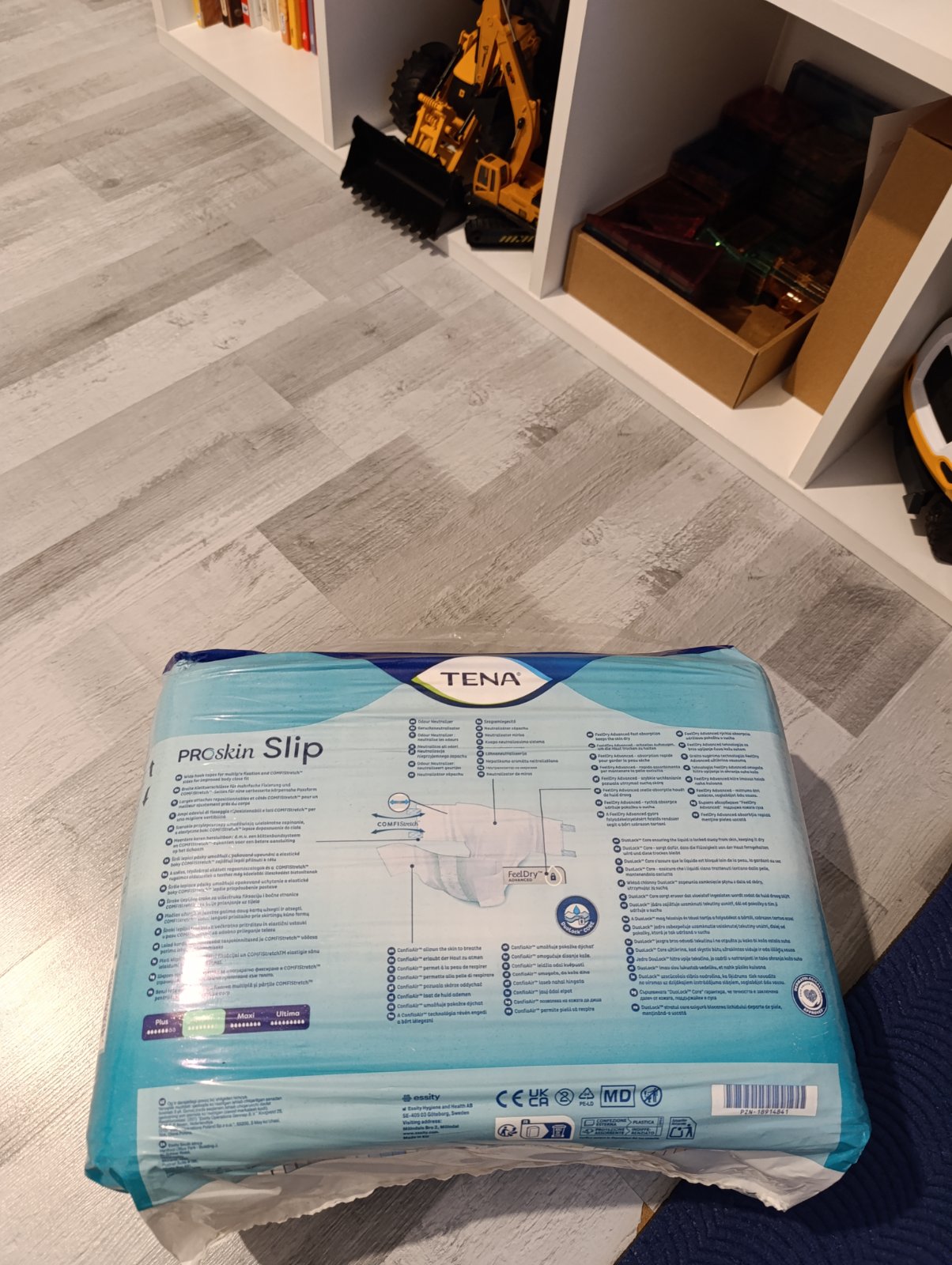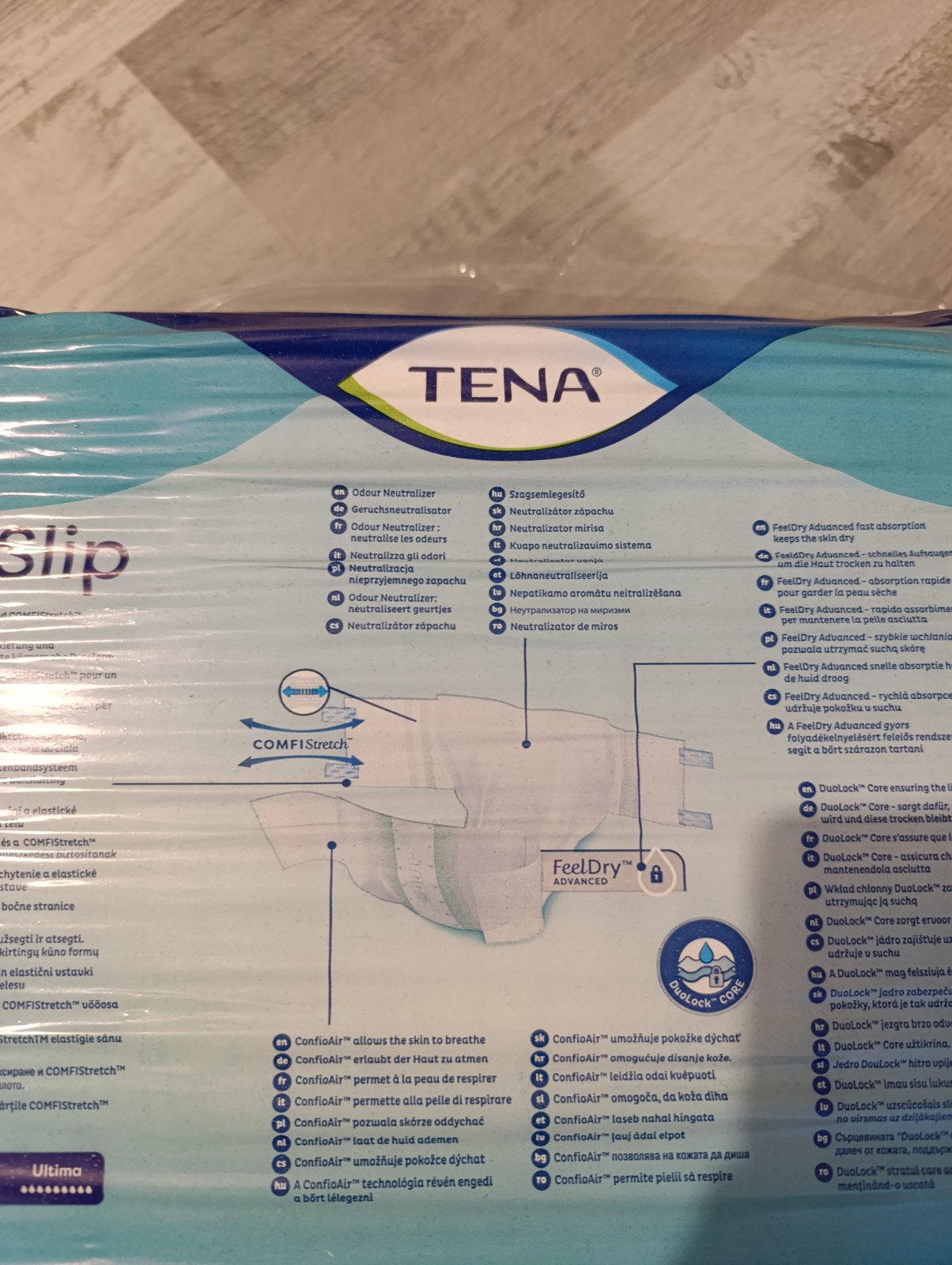 Zabalené klasické plienky pre seniorov, veľkosť M, značka Tena. V prípade záujmu pribalim cca 10 plienok veľkosť L značka Tena a molicare.