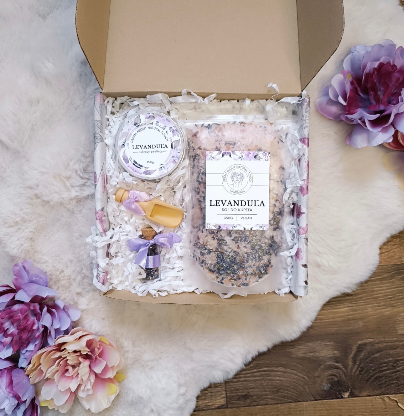 Luxusny handmade set levanduľa-soľ do kúpeľa,peeli