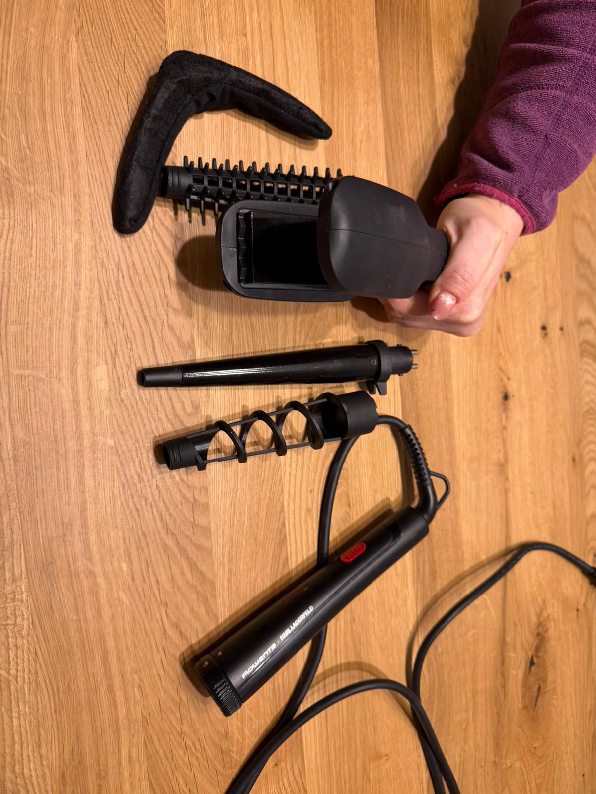 Karl Lagerfeld so 4 nástavami. Vlasy sa ňou dajú žehliť, natáčať, krepovať aj česať. Vďaka optimálnej teplote neničí vlasy. Minimálne používaná.