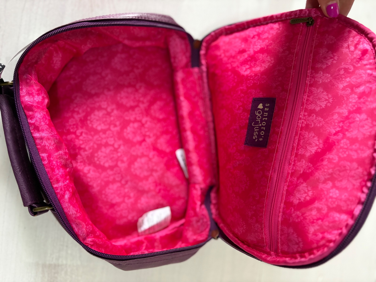Elegantný a praktický kufrík s rúčkou v odtieňoch tyrkysovej a modrej, s roztomilým motívom Ladybird zo série Gorjuss, je ako stvorený na cestovanie. Púzdro je ukončené zlatým zipsom v tvare srdca, vo vnútri má diskrétne vrecko na zips na odloženie drobností.