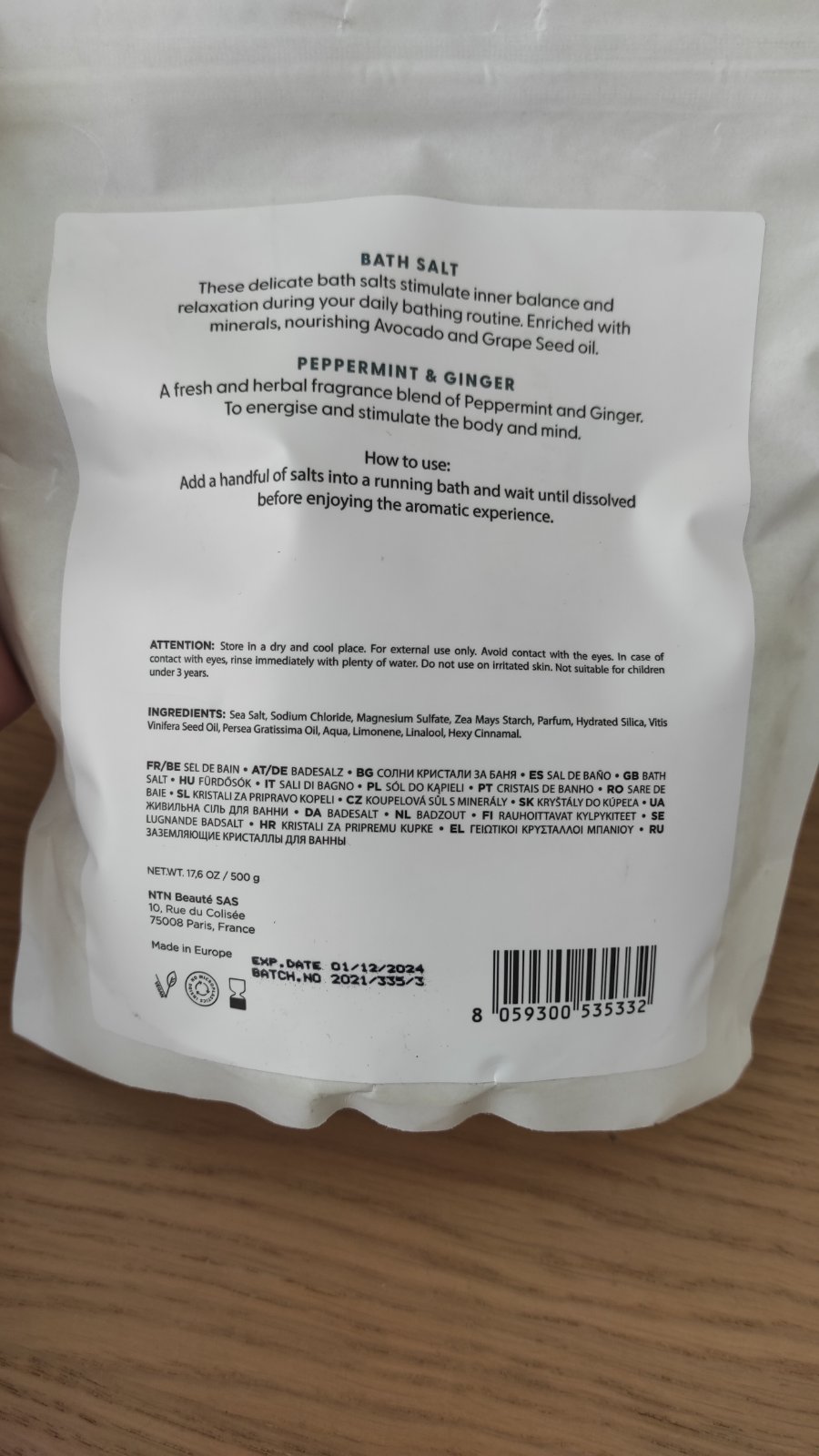 Sol do kupela 500g, kupova na notine, vona mata a zazvor, vegansky produkt, expir. date je uvedeny do 1.12.2024, ale nemyslim, ze by mohla byt zavadna aj po tomto datume, cena tomu prisposobena, je nova, neotvorena