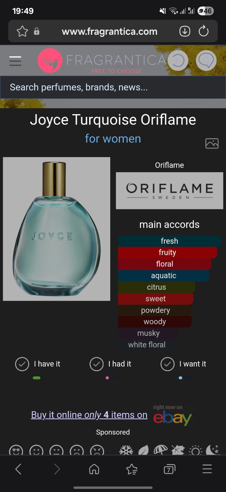 Parfém Joyce Turquoise značky Oriflame. Svieža, čistá, kvetinovo-ovocná vôňa. Použité minimálne, posúvam. Detaily na fotkách. Na cene sa vieme dohodnúť ☺️