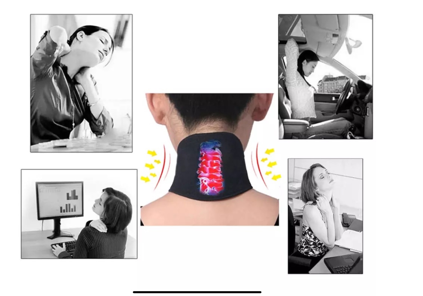 Správne použitie tohto výrobku je: najskôr mokrým obruskom utrite krk potom pripevnite sponu na krk, aby sa teplo rychlejšie vytvorilo a dostavili sa účinky termoelektrickej mikro-prúdovej stimulácie.