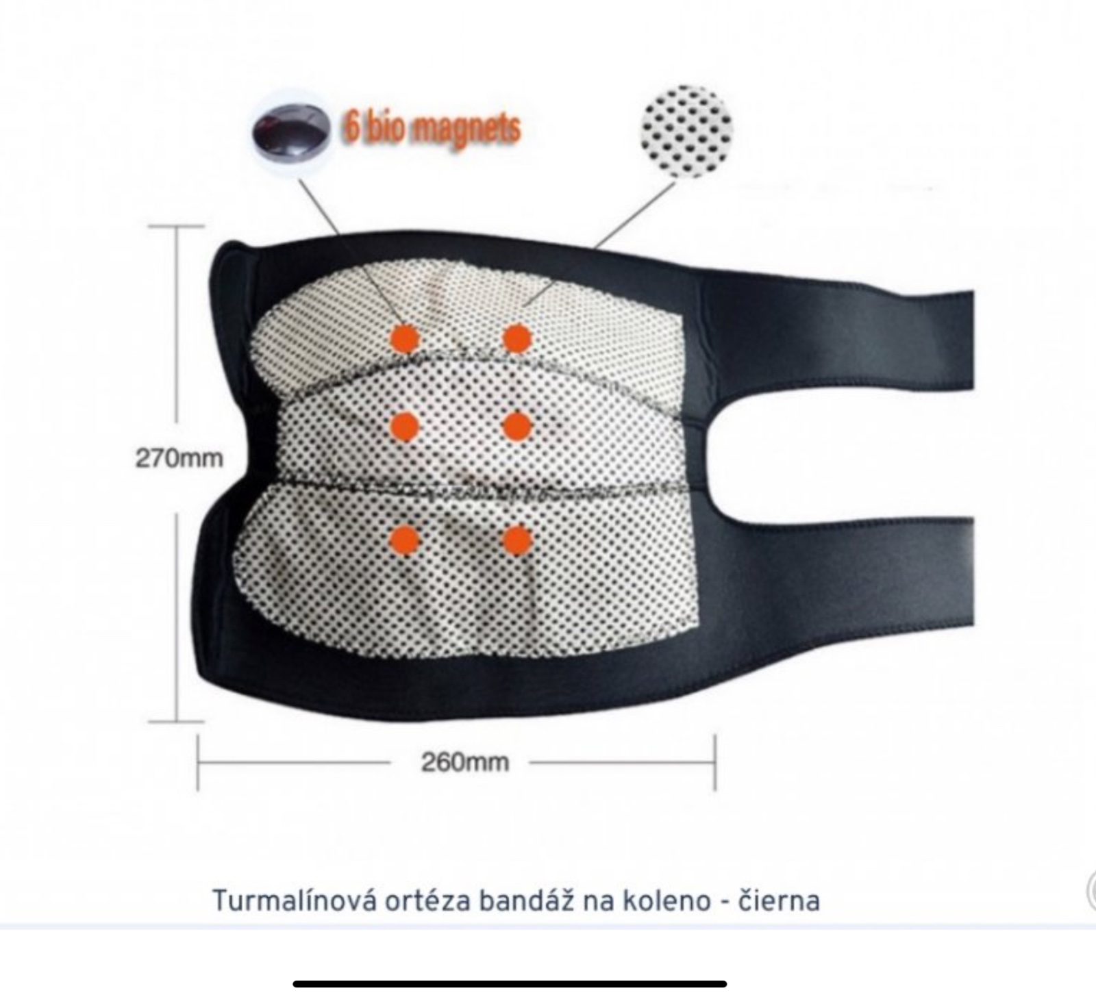 aktívna činnosť buniek, úprava metabolizmu, zlepšuje krvný obeh v kolene a okolitých tkanivách. Magnety nahradia akupunktúru, turmalín uvoľňuje kremík, bór, horčík, železo atď., prevencia a liečba zlomeniny kolena, úľava pri bolesti kolena a iné problémy. Vlastnosti:
