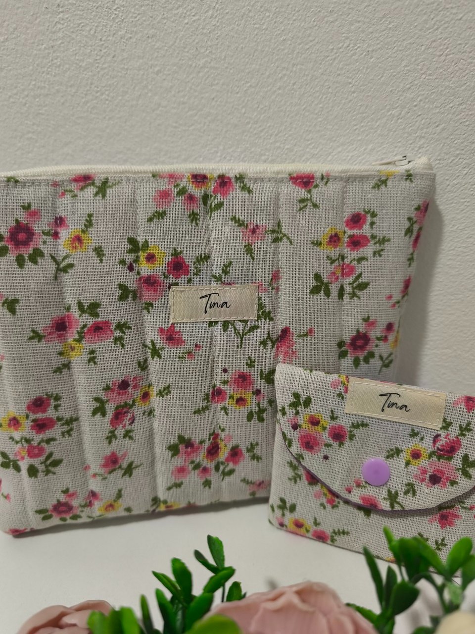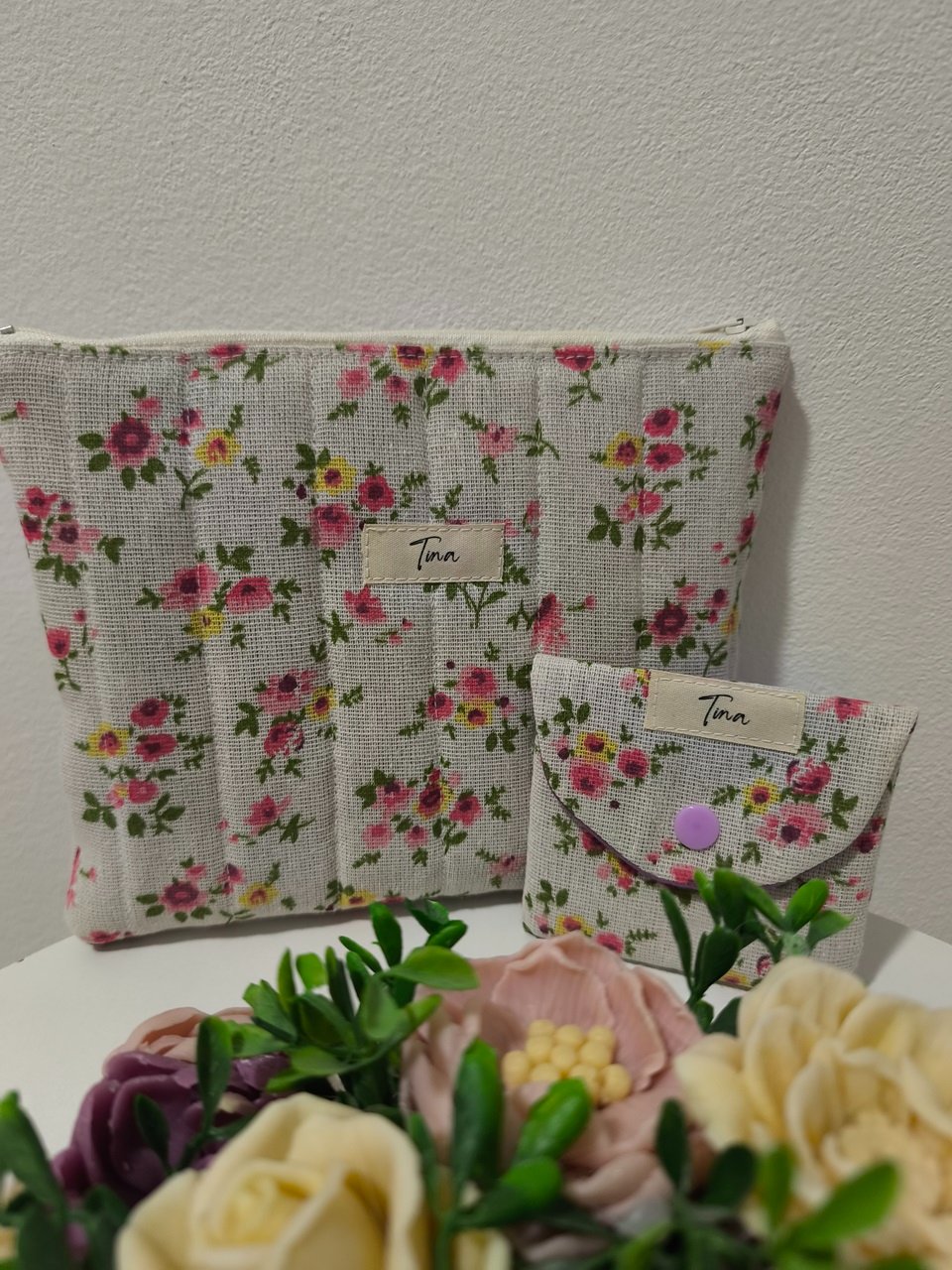 Taštička má kvetový vzor .Je podšitá vatelínom a podšitá 100 % bavlnou