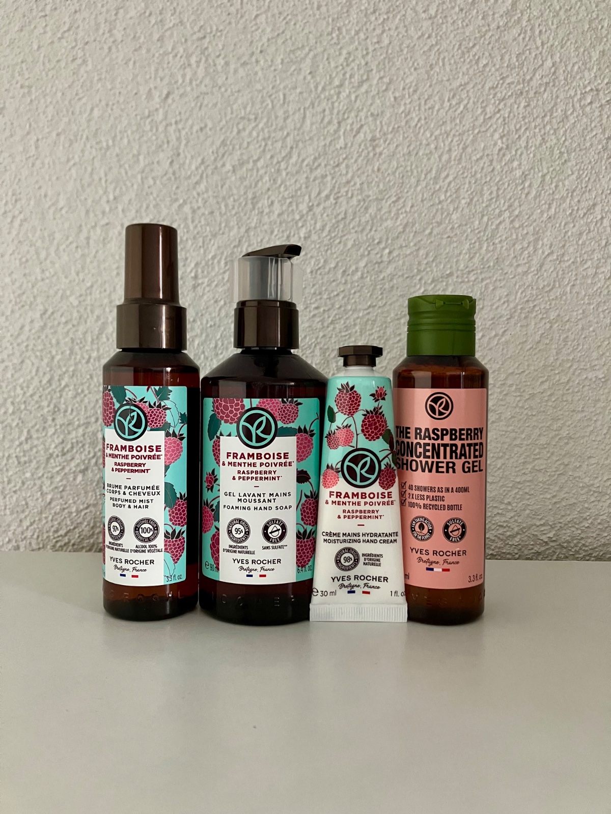Parfumovaný sprej na telo a vlasy 100 ml, tekuté mydlo 190 ml, krém na ruky 30 ml a koncentrovaný sprchový gél 100 ml. Vôňa malina a mäta. Nové, neskúšané, vhodné ako dar. Cena je pevná, bez poštovného, ďakujem :) nie výmena