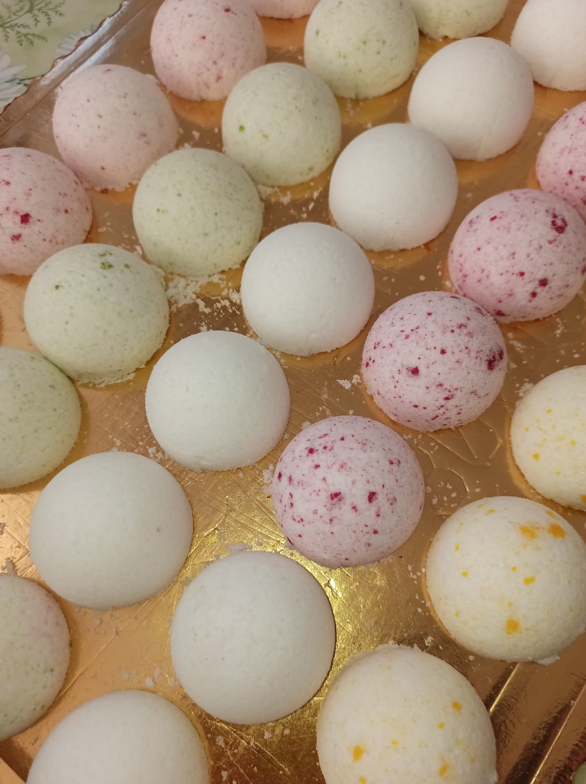 Olejové šumivky do kúpeľa s olejom z marhuľových jadier...rôzne vône...po použití nie je potrebné použiť krém.krasne pokožku premastia,hydratuju.odporucam aj na kúpeľ nôh ..aj keď nemáte vaňu ...relax do lavorika na nožičky...neoľutujete.odber miním 3 ks.cena je za kus.priemer pologule je 5 cm