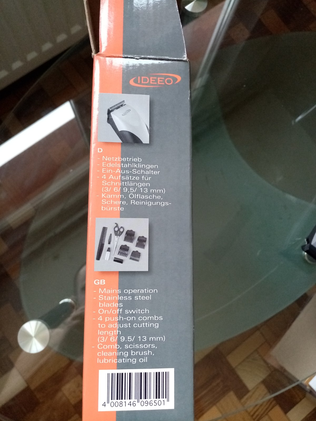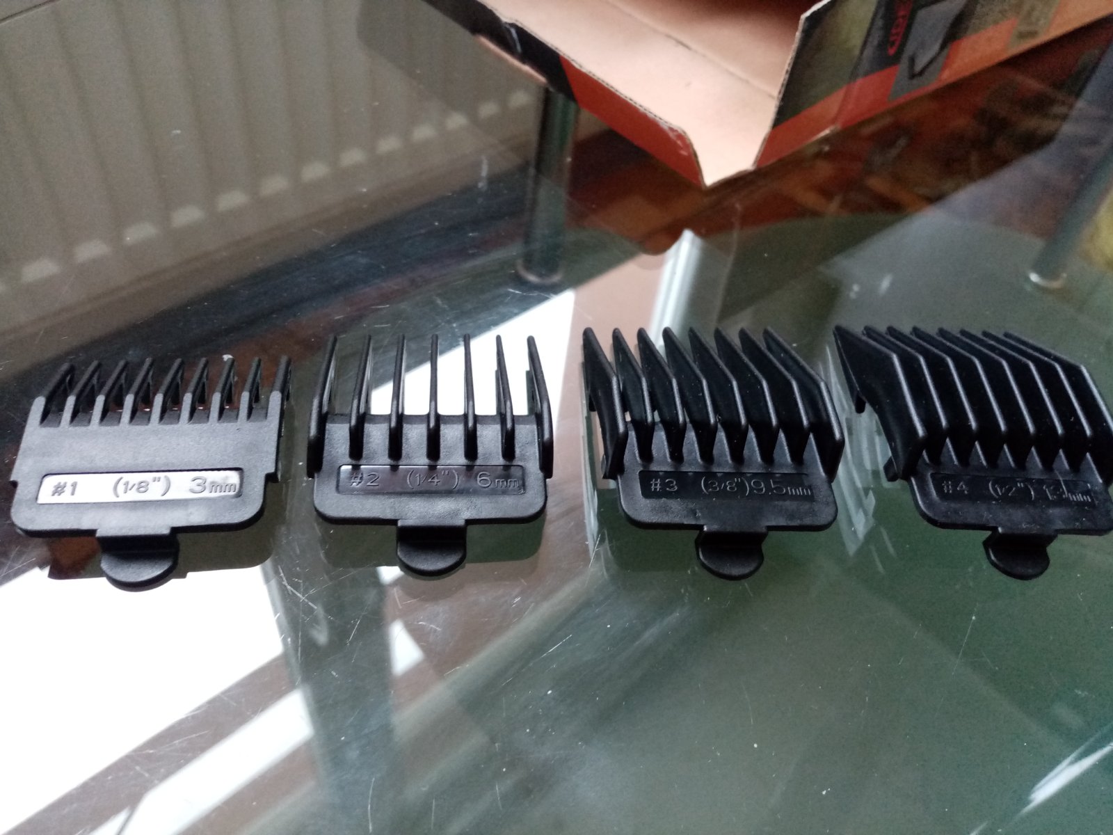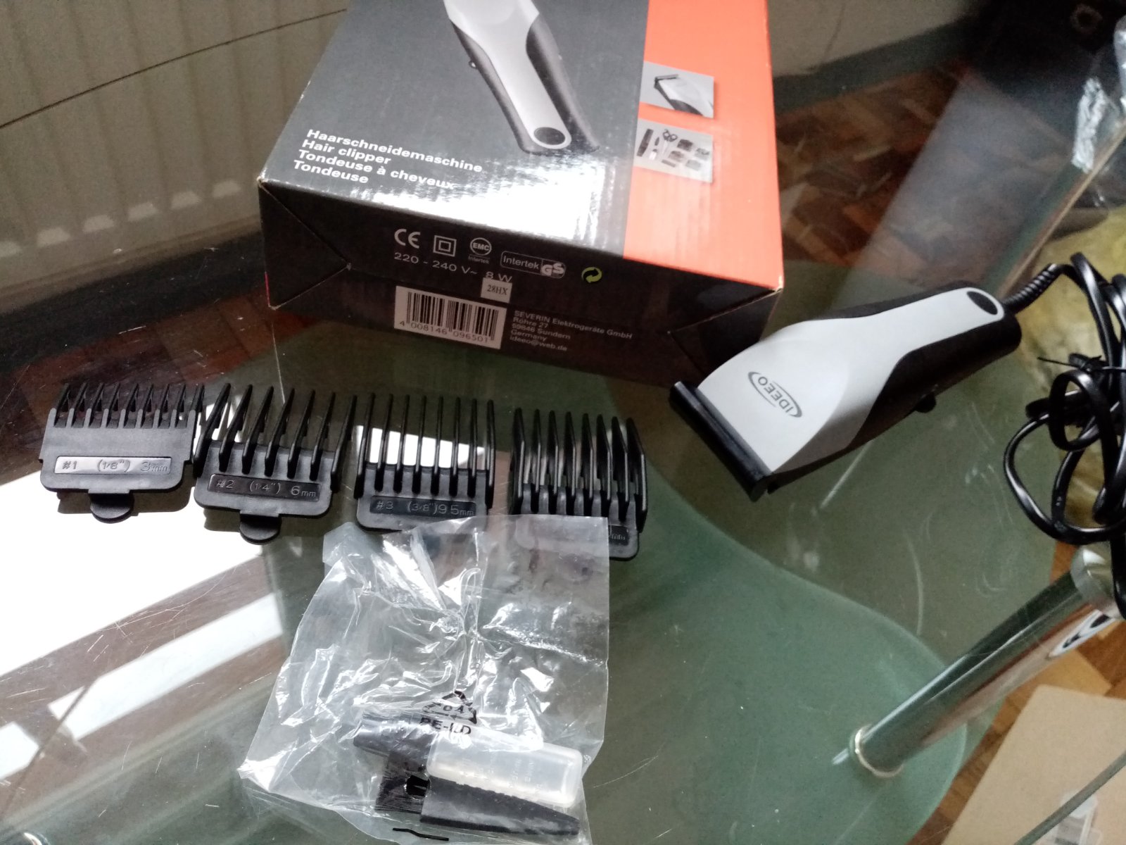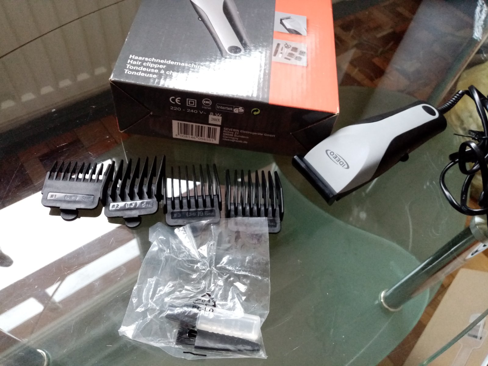 Balenie obsahuje 4x plastové nadstavce (3 mm, 6mm, 9.5 mm, 13 mm), olej na údržbu, mini čistiaca kefka, príručka. V balení chýbajú iba nožnice + hrebeň.