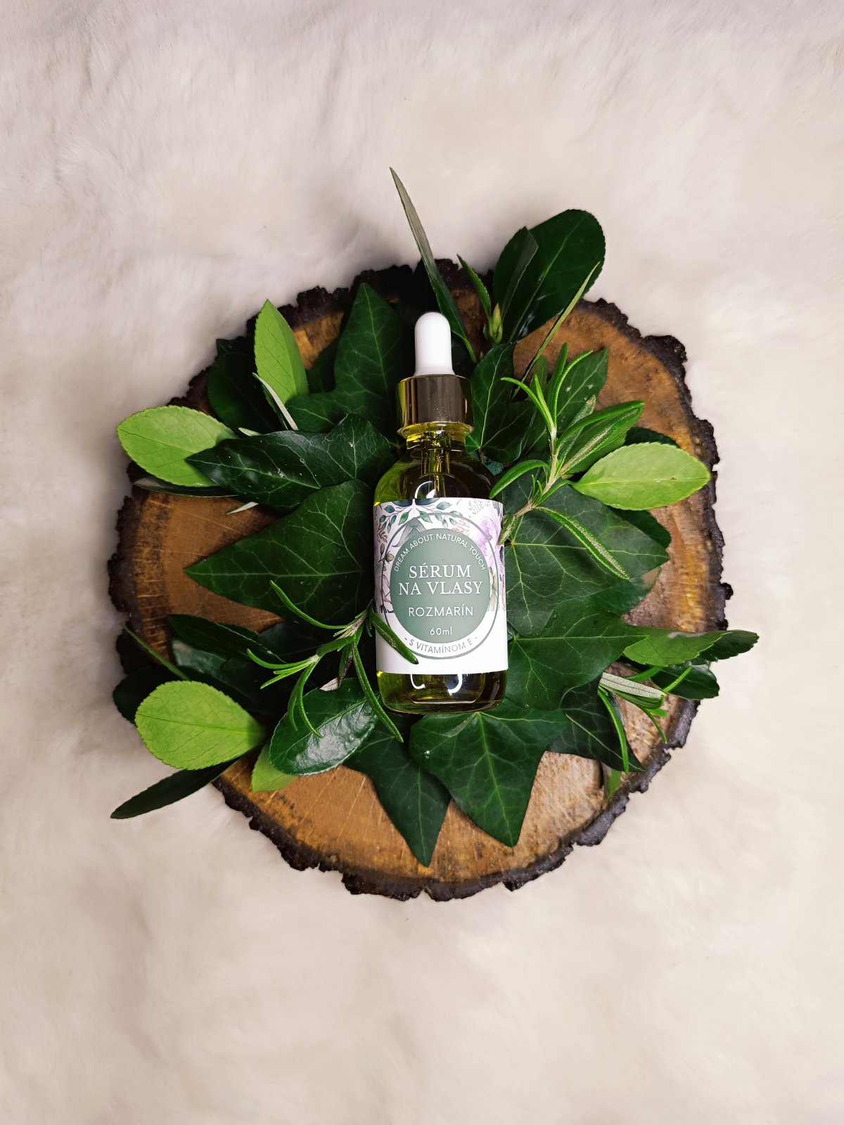 Prírodné výživné sérum na báze luhovaného rozmarínového oleja, vytvorené na podporu rastu vlasov, regeneráciu vlasovej pokožky a dodanie prirodzenej hebkosti.