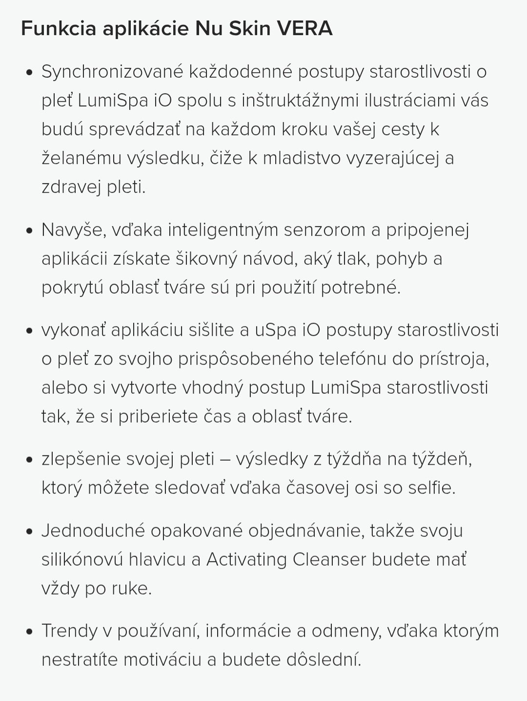 Prístroj je špeciálne vyvinutý na spoluprácu s prípravkami ageLOC LumiSpa Activating Cleanser, ktorý umožňuje dosiahnuť vynikajúce tlmenie a interakciu medzi silikónovou hlavicou ageLOC LumiSpa a vašou pleťou a pomáha vám dosiahnuť klinicky overené výhody, ktoré vaša pleť miluje