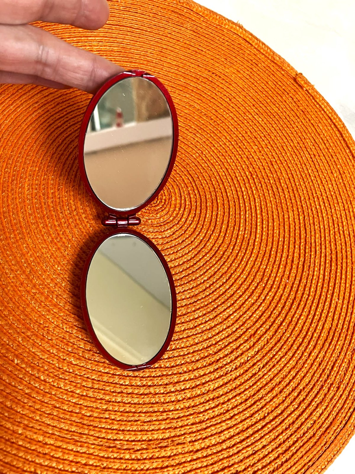 krásne obojstranné zrkadielko do kabelky,8 x 5 cm,min. používané,jemne metalický na povrchu - zle sa to fotí kvôli odlesku