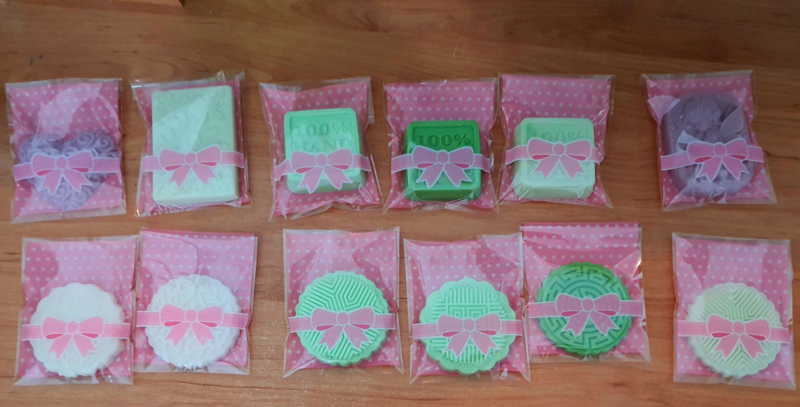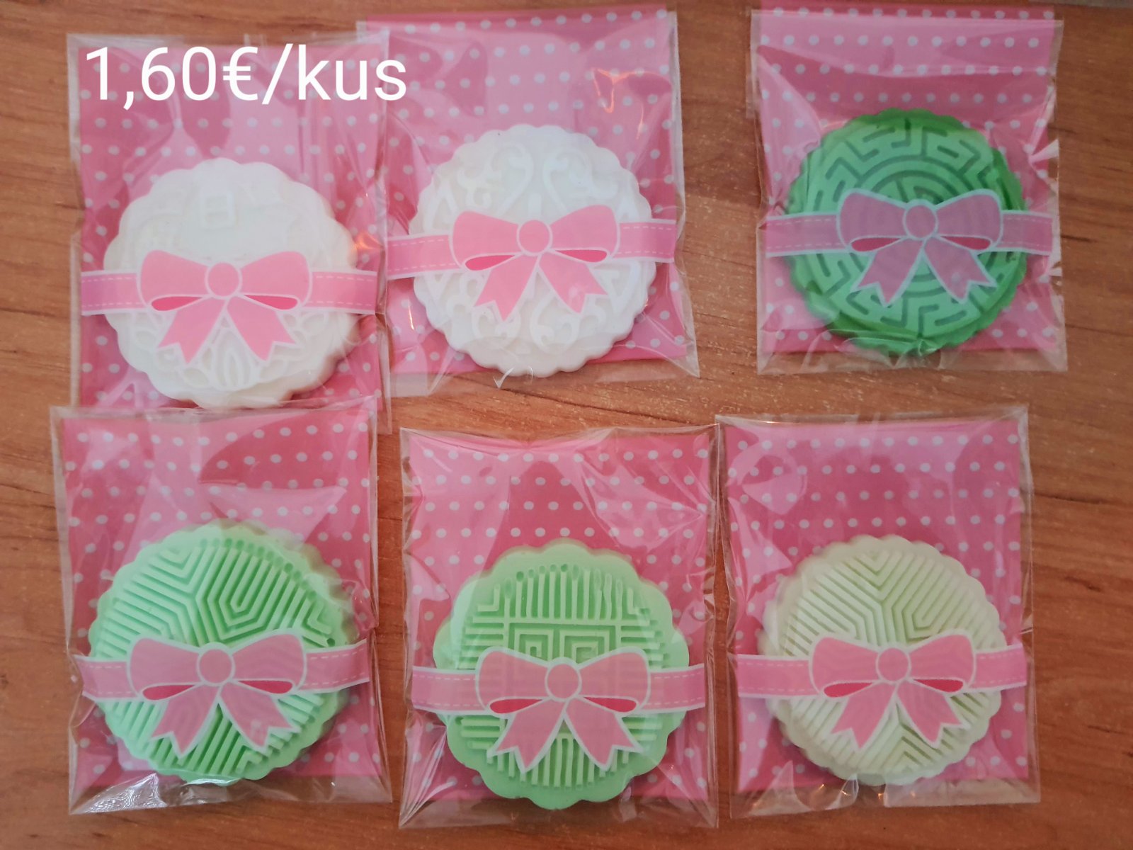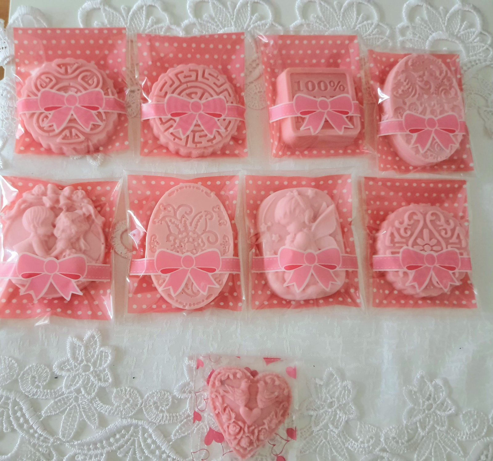 Voňavé darčekové mydielka s vitamínom E s vôňou melónu zelené a s vôňou jahôd ružové