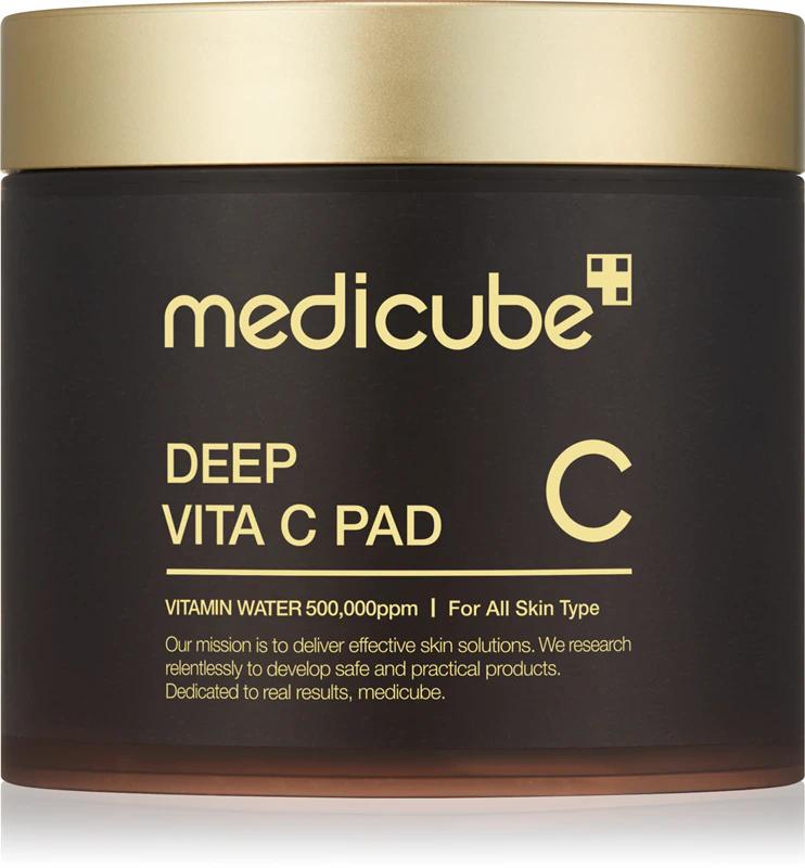 MEDICUBE Deep Vita C Pad Rozjasňujúce tampóny s vitamínom C oživia mdlú pokožku bez jasu už po 7 dňoch používania! Vegánske tonerové tampóny sú naplnené 500 000 ppm výťažkom z rakytníka, ktorý rozjasní a zjednotí tón pleti. Dodatočné rozjasňujúce látky, ako je niacínamid a extrakt z citrónovej kôry, pomáhajú vybieliť tmavé škvrny pleti.