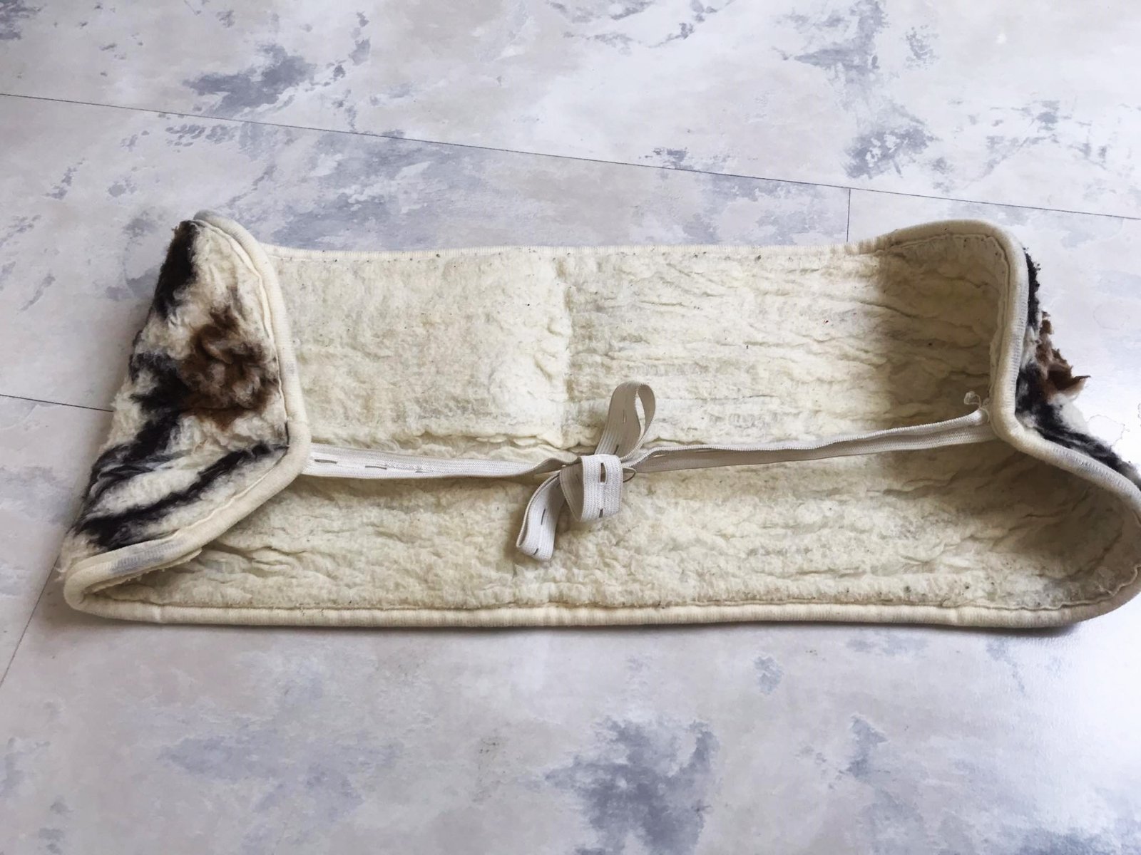používaný teplý ľadvinový pás z pravého ovčieho rúna, 100% ovčia vlna,60 x 20 cm