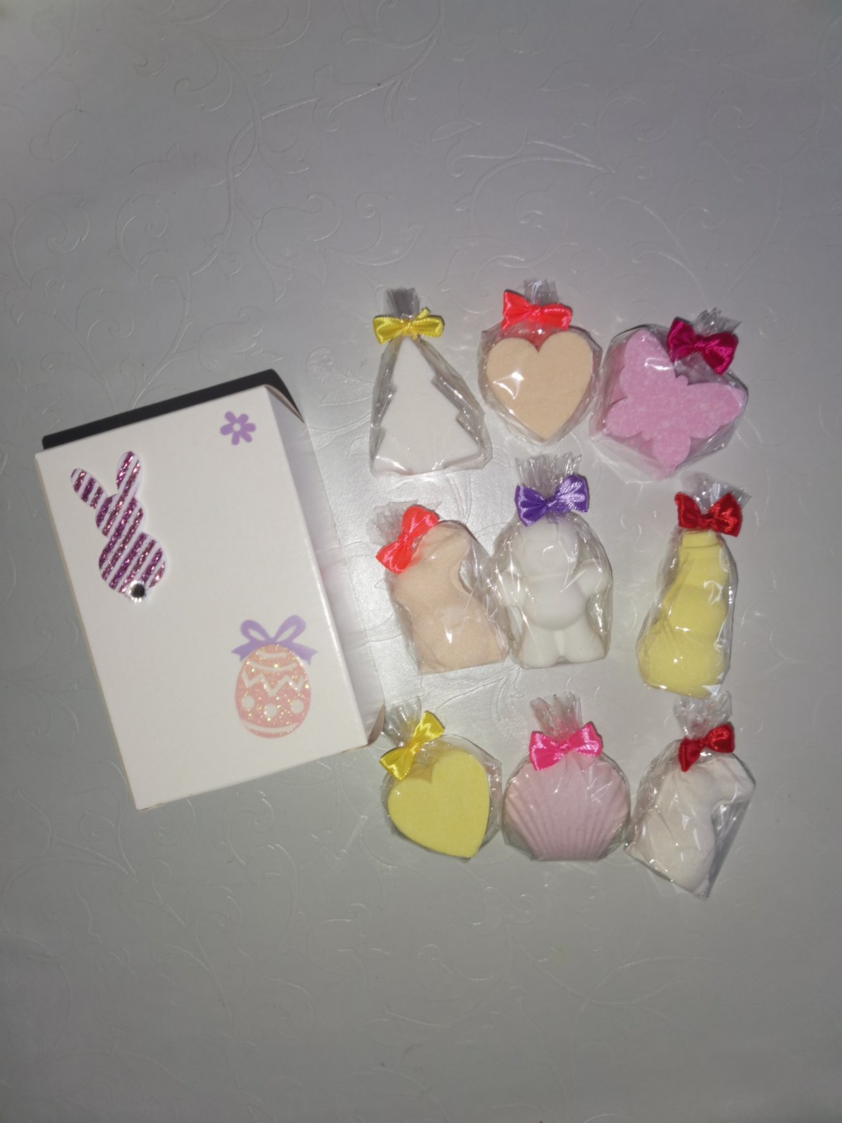 Šumivé bomby do kúpeľa - darčeková krabička 1, v krabičke sa nachádza 9ks šumiviek - Mix voní, tvarov a farieb, s bylinkami aj bez mozem namiesat rozne, zdobenie krabicky tiez podla dohody, cena za krabičku 6e