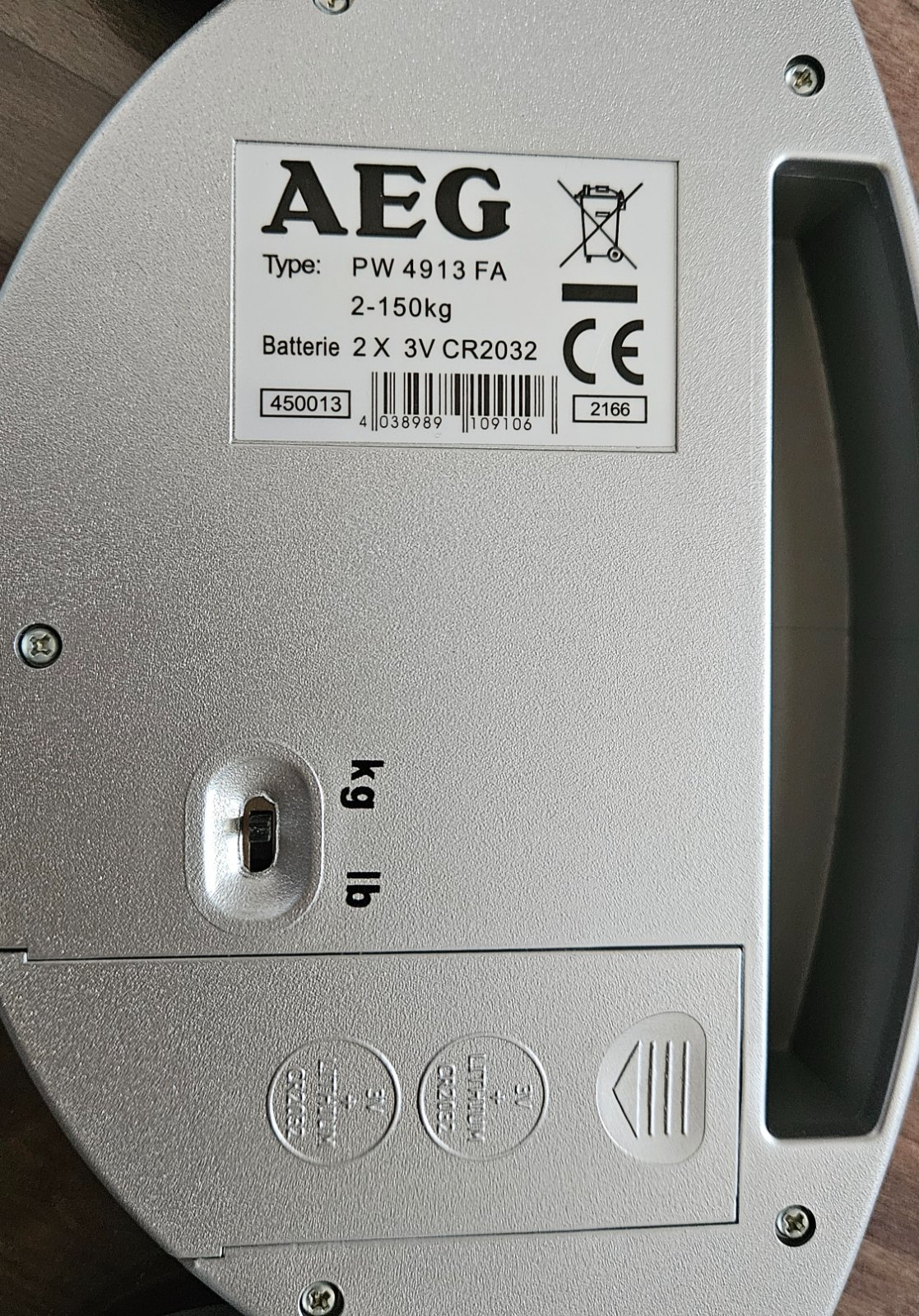 Ponúkam osobnú váhu AEG PW 4913 FA, plne funkčná, nepoškodená, je na dve baterky 3V CR 2032, nie sú súčasťou.