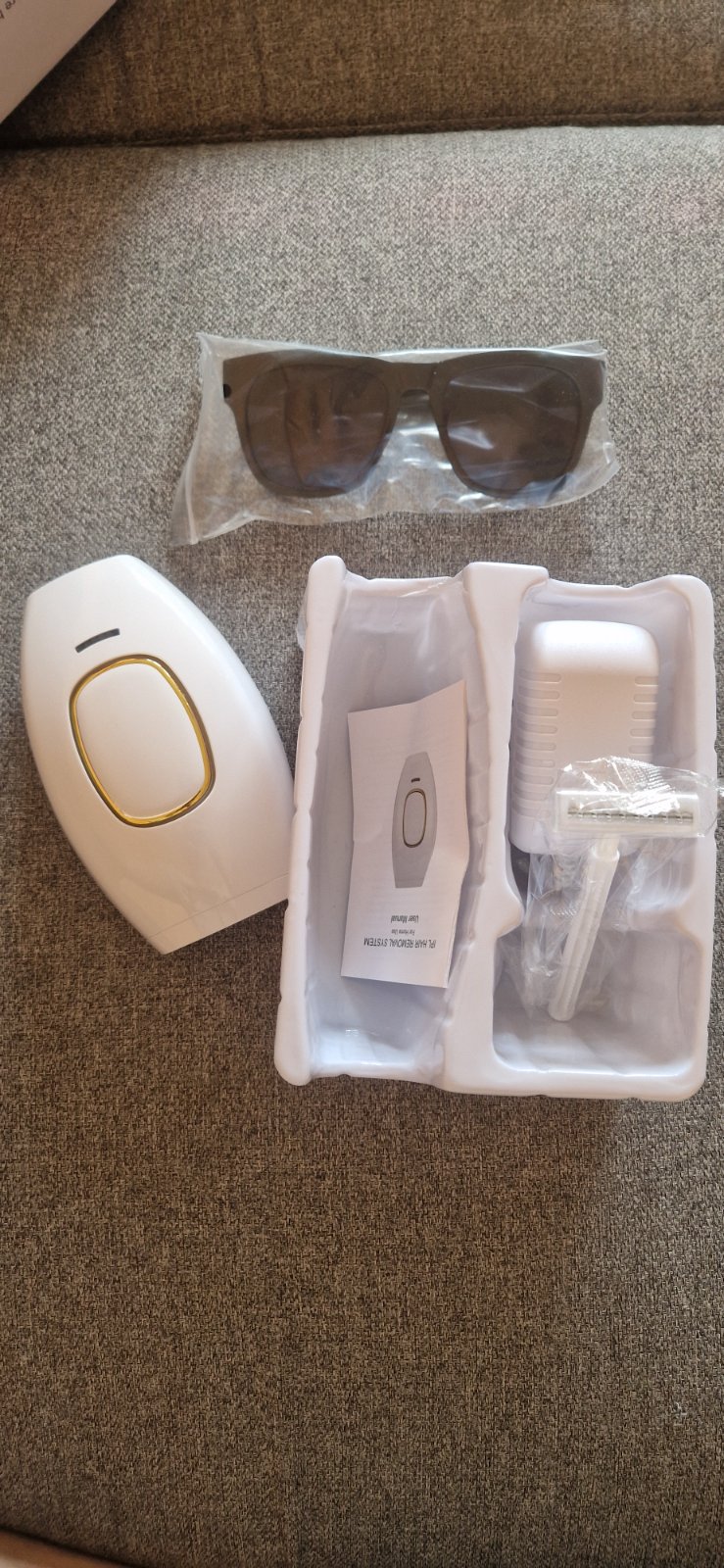 Sucastou balenia su ochranne okuliare, ziletka, navod, IPL odstranovac a sietove napajanie.