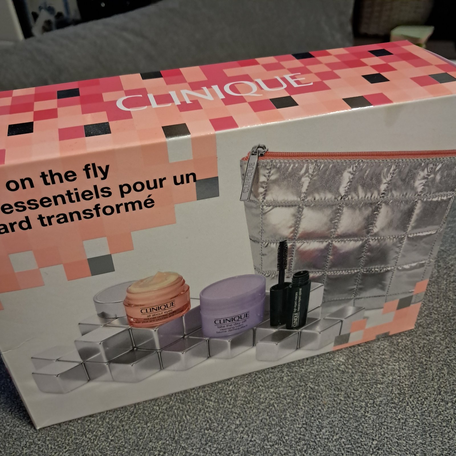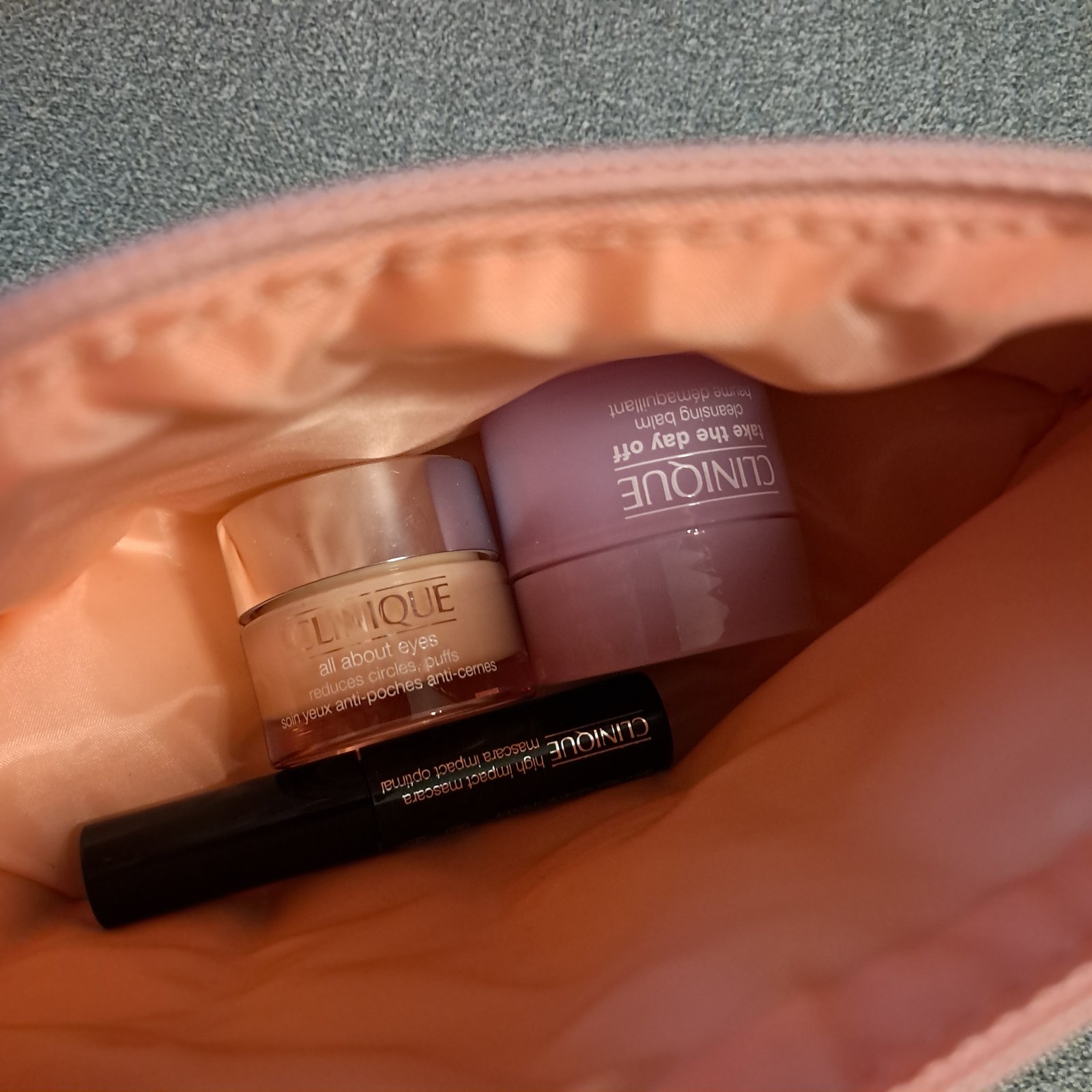 Na fotke je preložený popis, starostlivosť o oči, nejaké krémy a špirála ,originál clinique