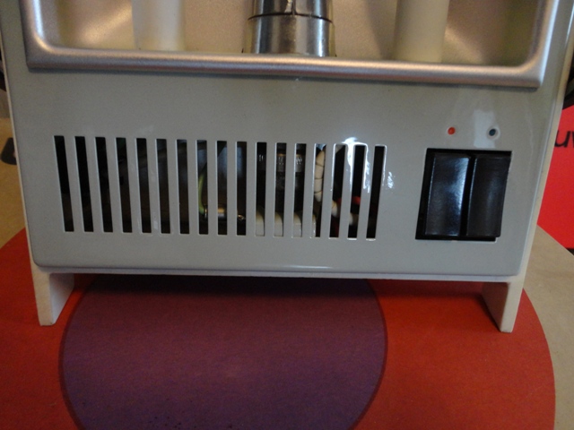 Horské slnko – biele svetlo v strede – je funkčné. Infražiarič – oranžové (červené) svetlo po bokoch – skôr nefunkčné. (Síce žiarivky sa ohřeju, ale nie dostatočne.)