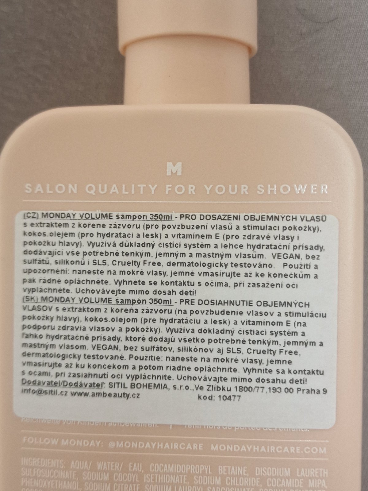 Nový. Monday - šampón, objem 350ml, cena 6,00€. Pantene - šampón, objem 1l, cena 8,00€. Mám viac kusov.