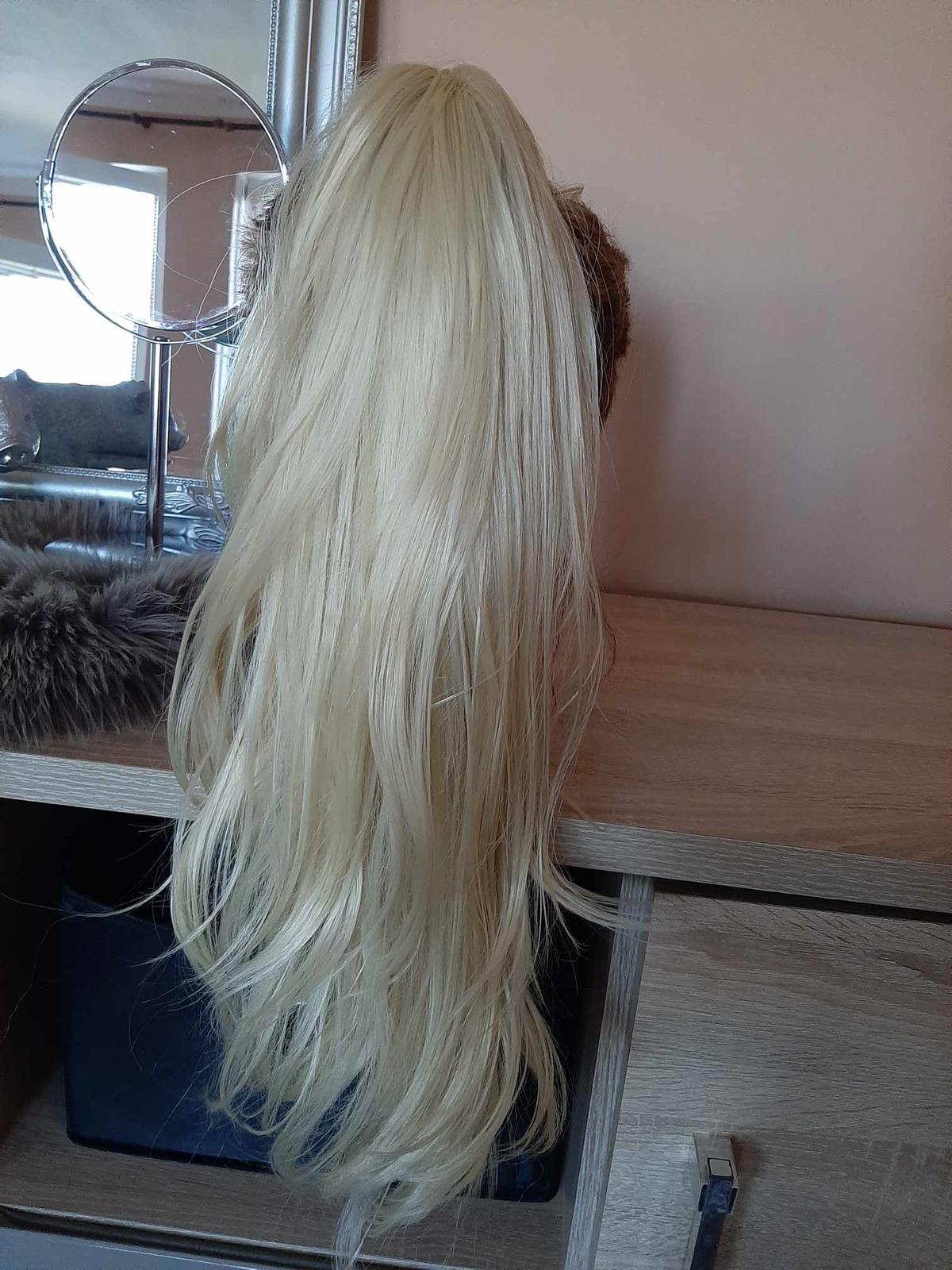 Príčesok vo forme dlhého husteho copu vykúzli bohatý a neodolateľný účes nielen na ples alebo večierok, ale aj na každodenné nosenie. Imituje pravé vlasy . Z dolnej strany má praktický pevný štipec , aplikácia príčesku je veľmi jednoduchá, cop iba prichytíte štipcom k vlastným vlasom.