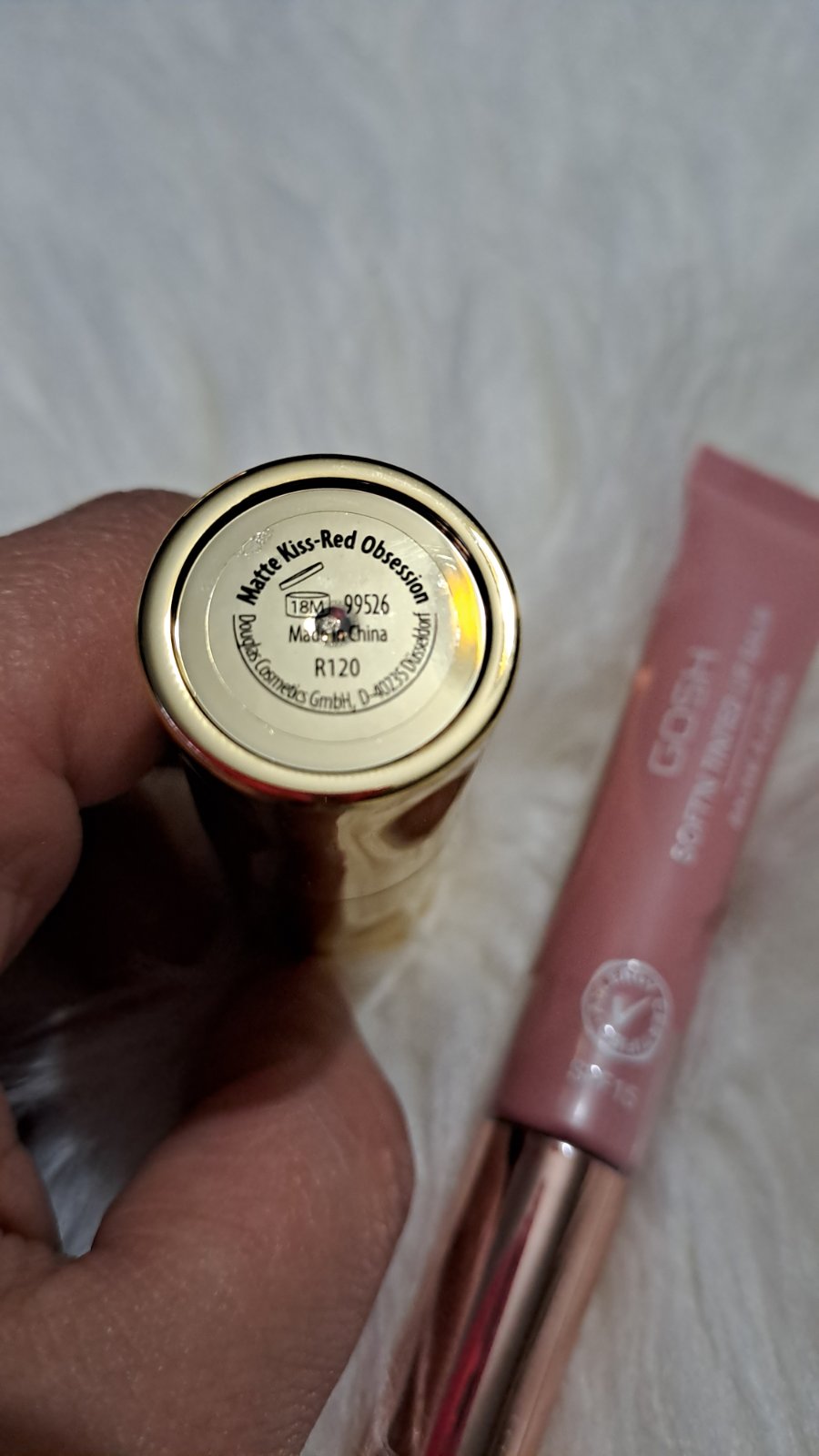 Rúž Douglas Matte kiss Red Obsession , Gosh Soft'n tinted lip balm. Obe nové. Cena spolu.