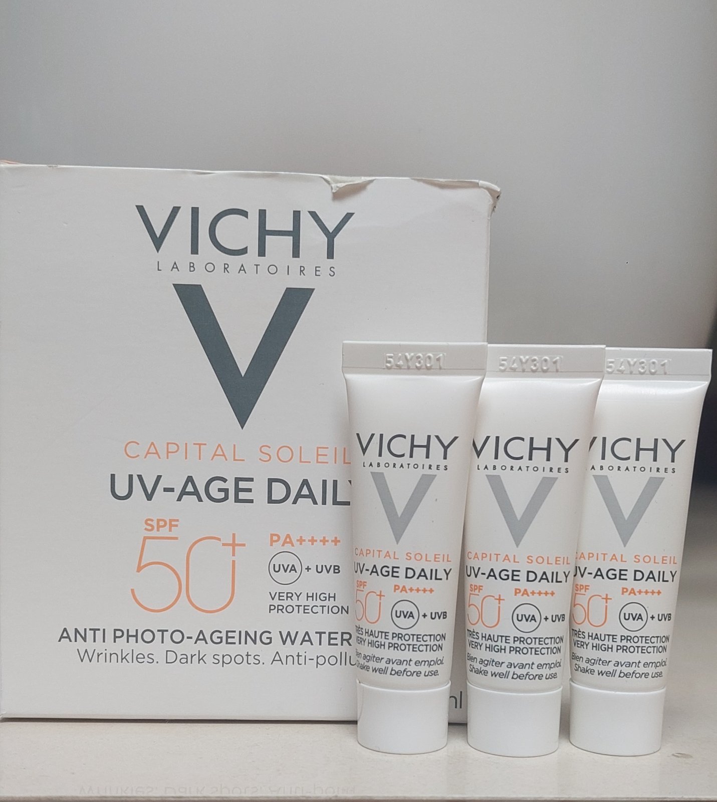 -✅vzorky VICHY Capital Soleil UV-Age daily SPF50+, UVA+UVB, anti-photo aging water fluid, hypoallergenic, 15x3ml, cena 8€
