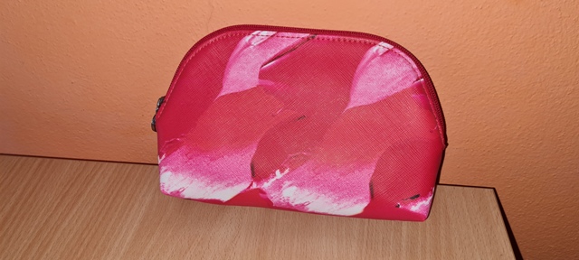 Kvalitná červená kozmetická taštička, zvrchu umývateľná - plastová, zvnútra čierna kvalitná podšívka, perfektný stav
