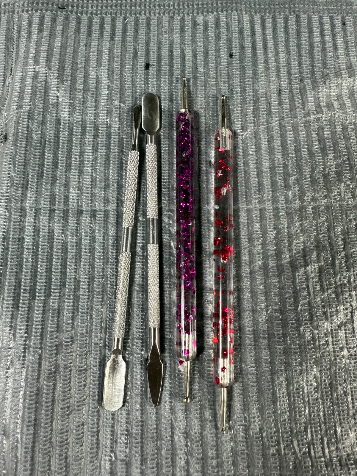 pouzivane jedno je pusher na zatláčanie kozicky a tie pera su na zdobenie nechtov