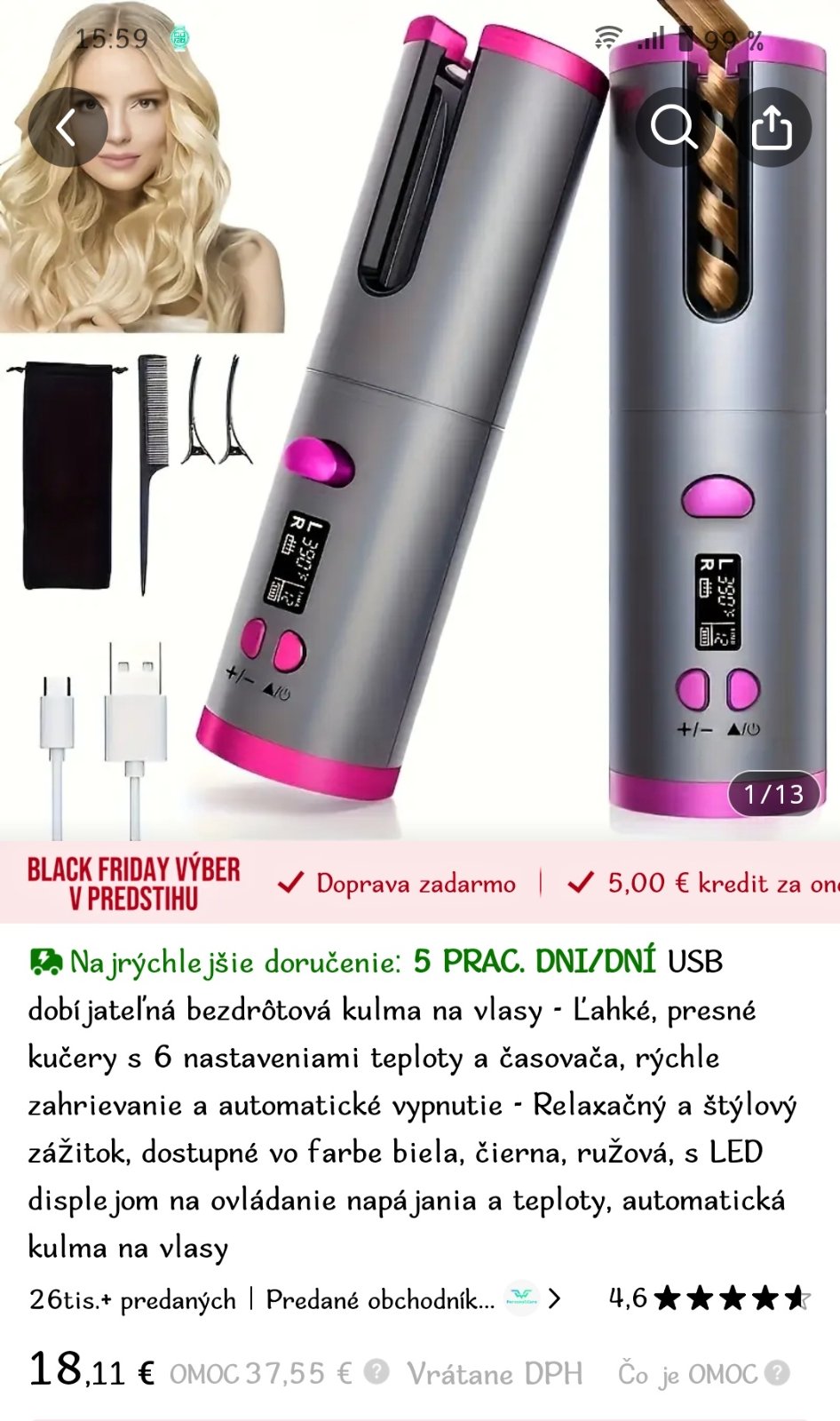 Bezdrôtová kulma na vlasy