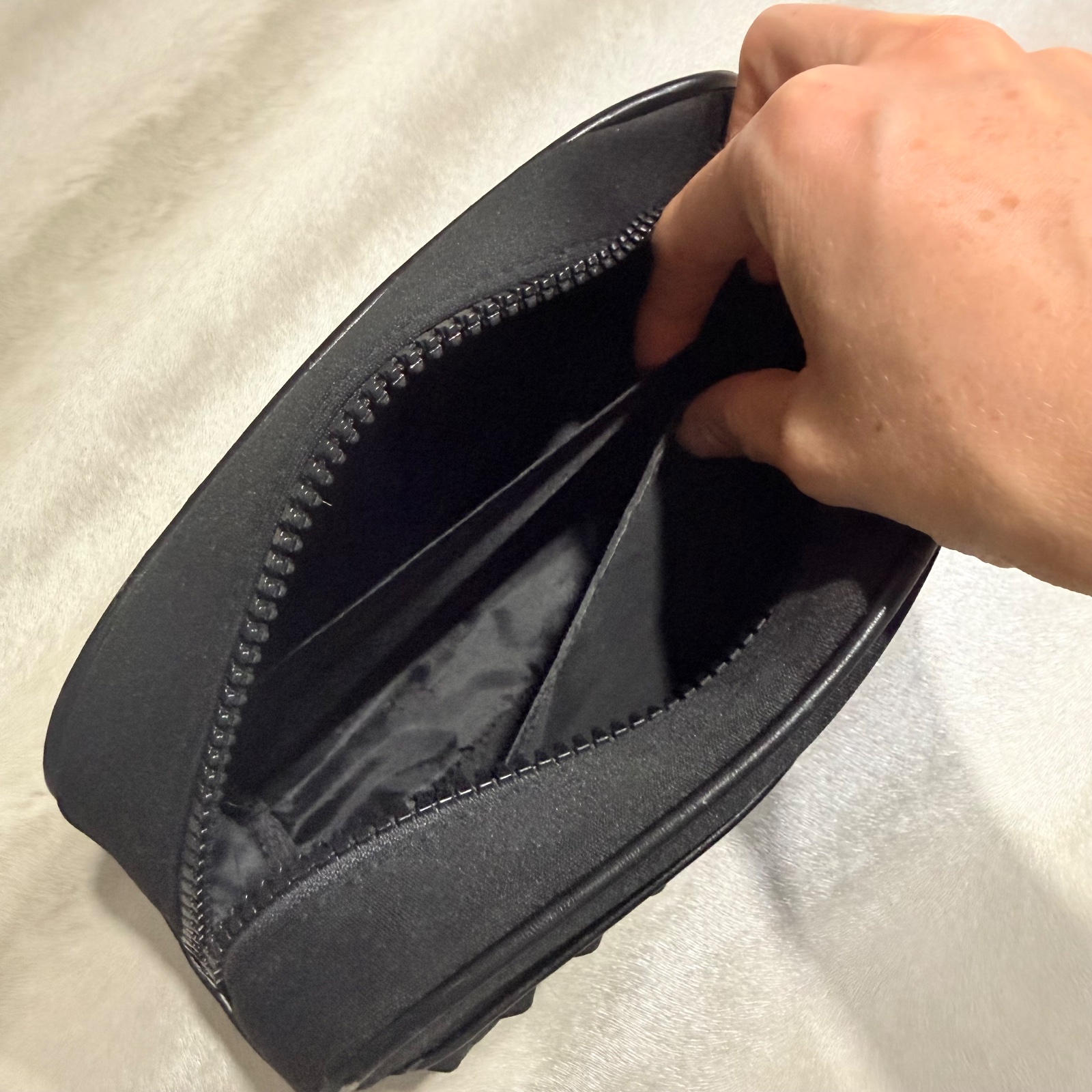 Predám čiernu Givenchy kozmetickú taštičku, bola len skladovaná, avšak koženkový materiál na leme sa miestami olupuje.