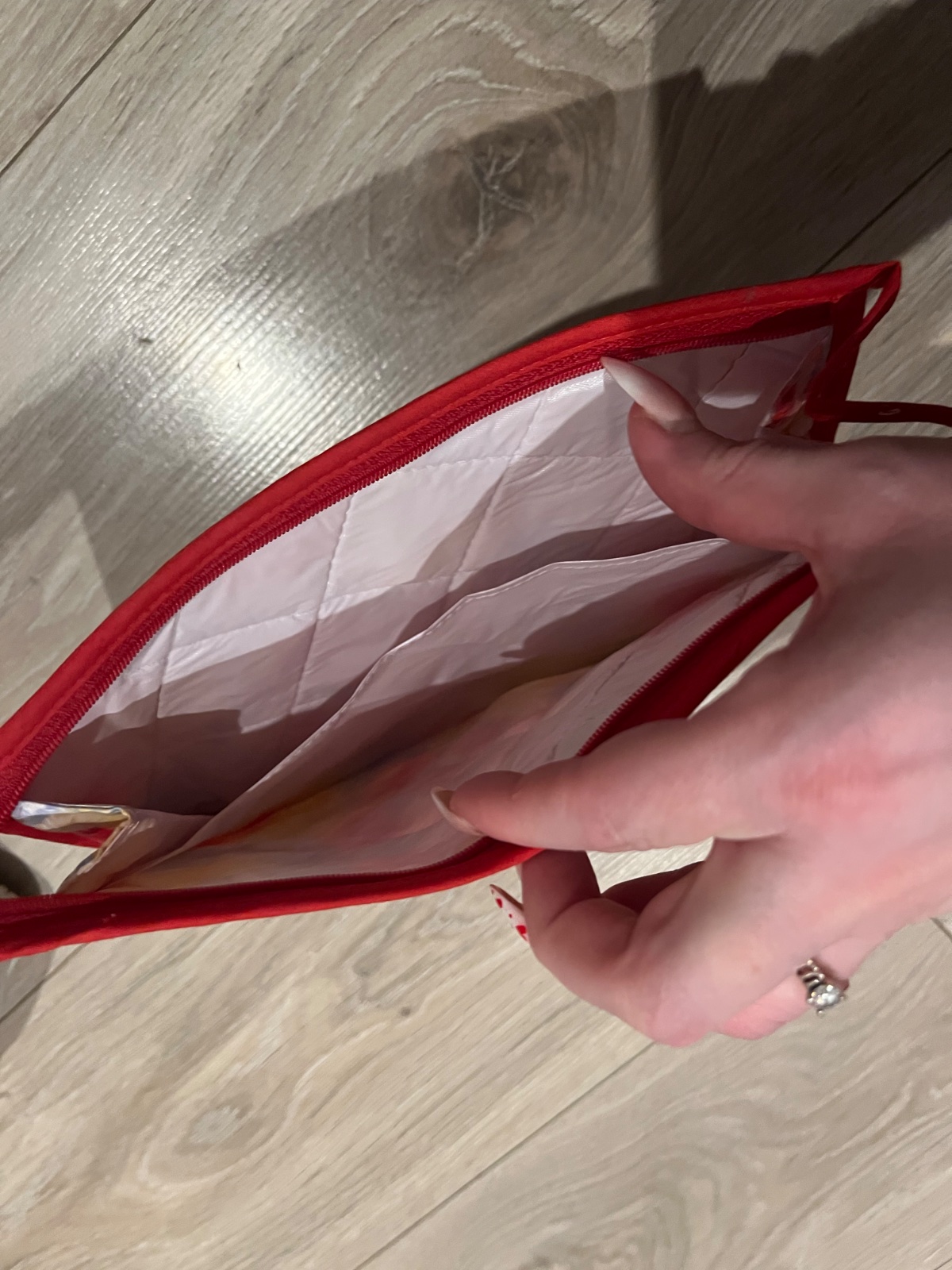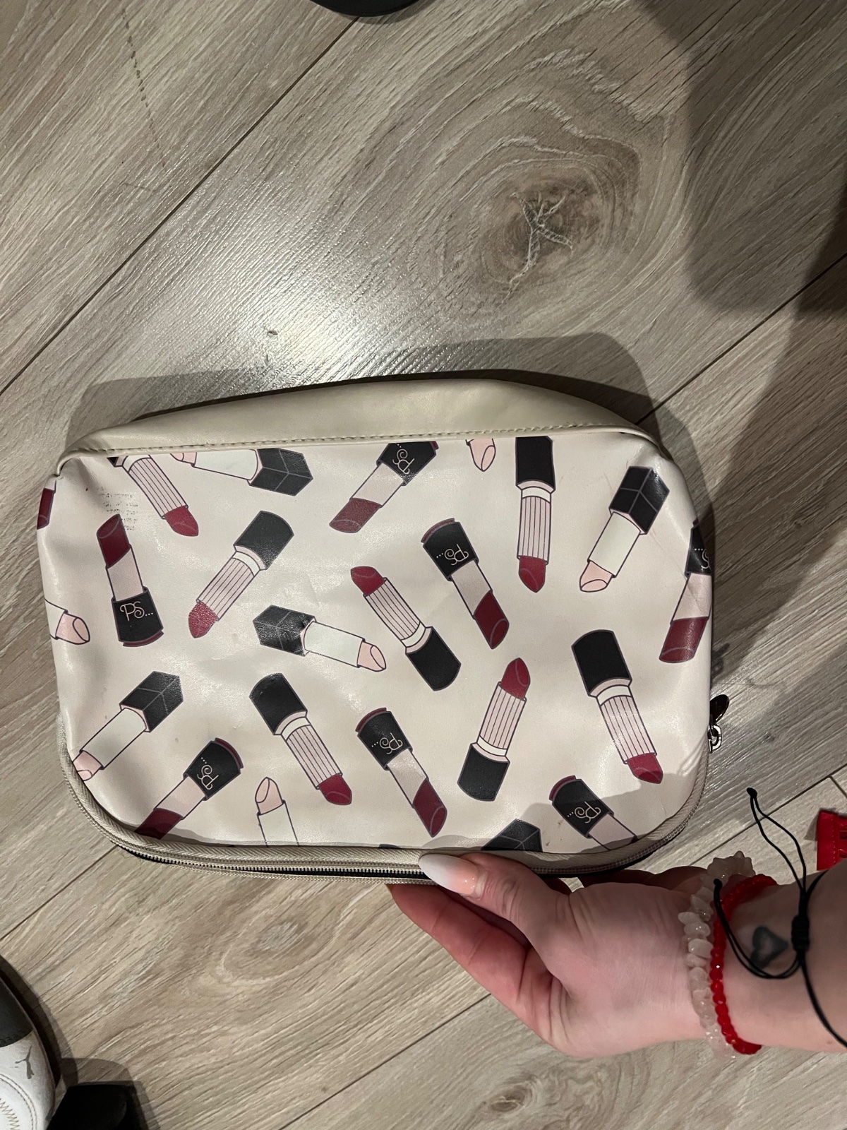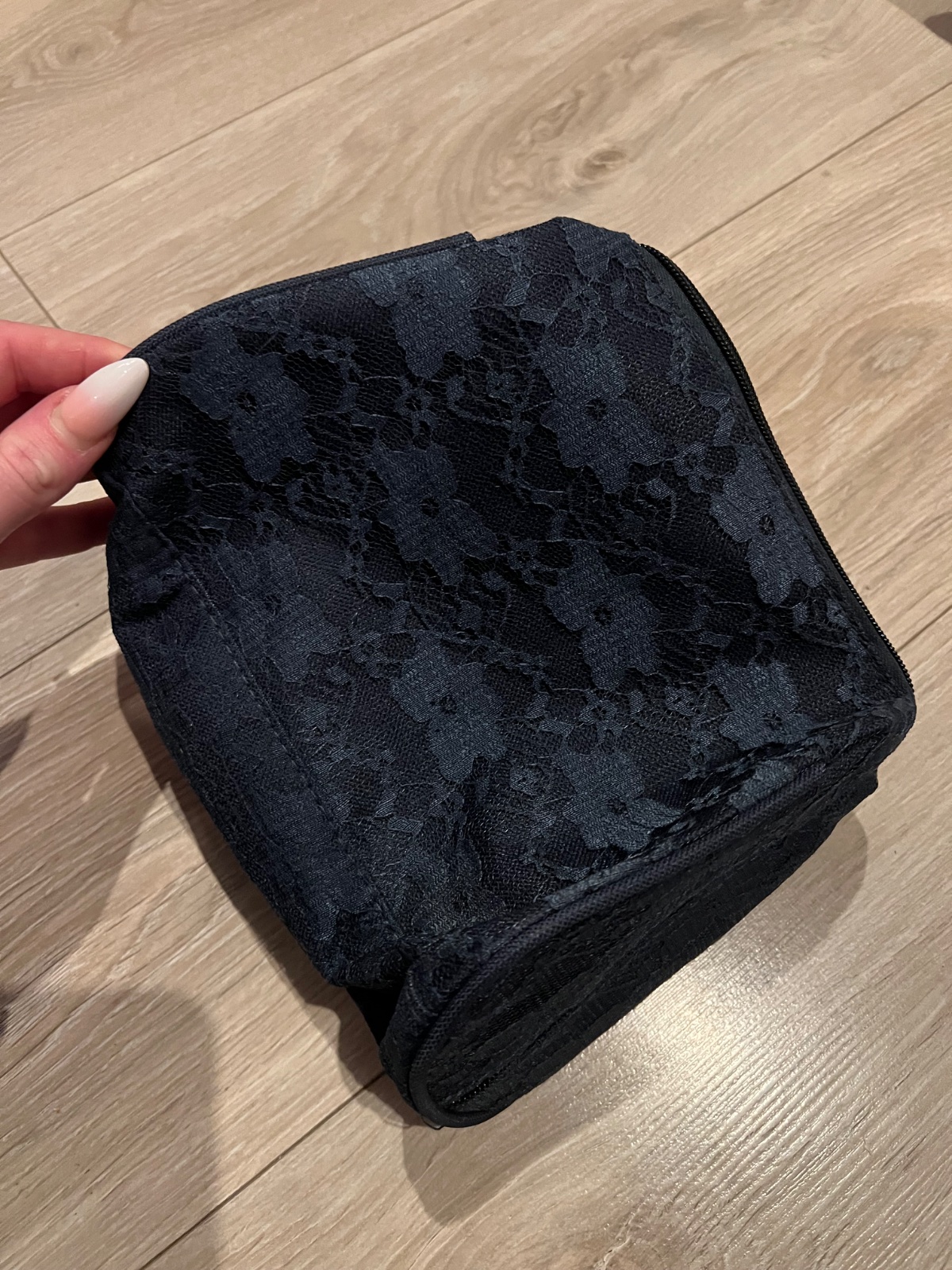 Čierno cerveny kufrik, top stav, ani som nemala kde pouzivat,iba stoji v skrini :( je to hlavne na kozmetické potreby,ako zorganizator . Šírka: 39cm, dĺžka: 56cm , plus Rúčka