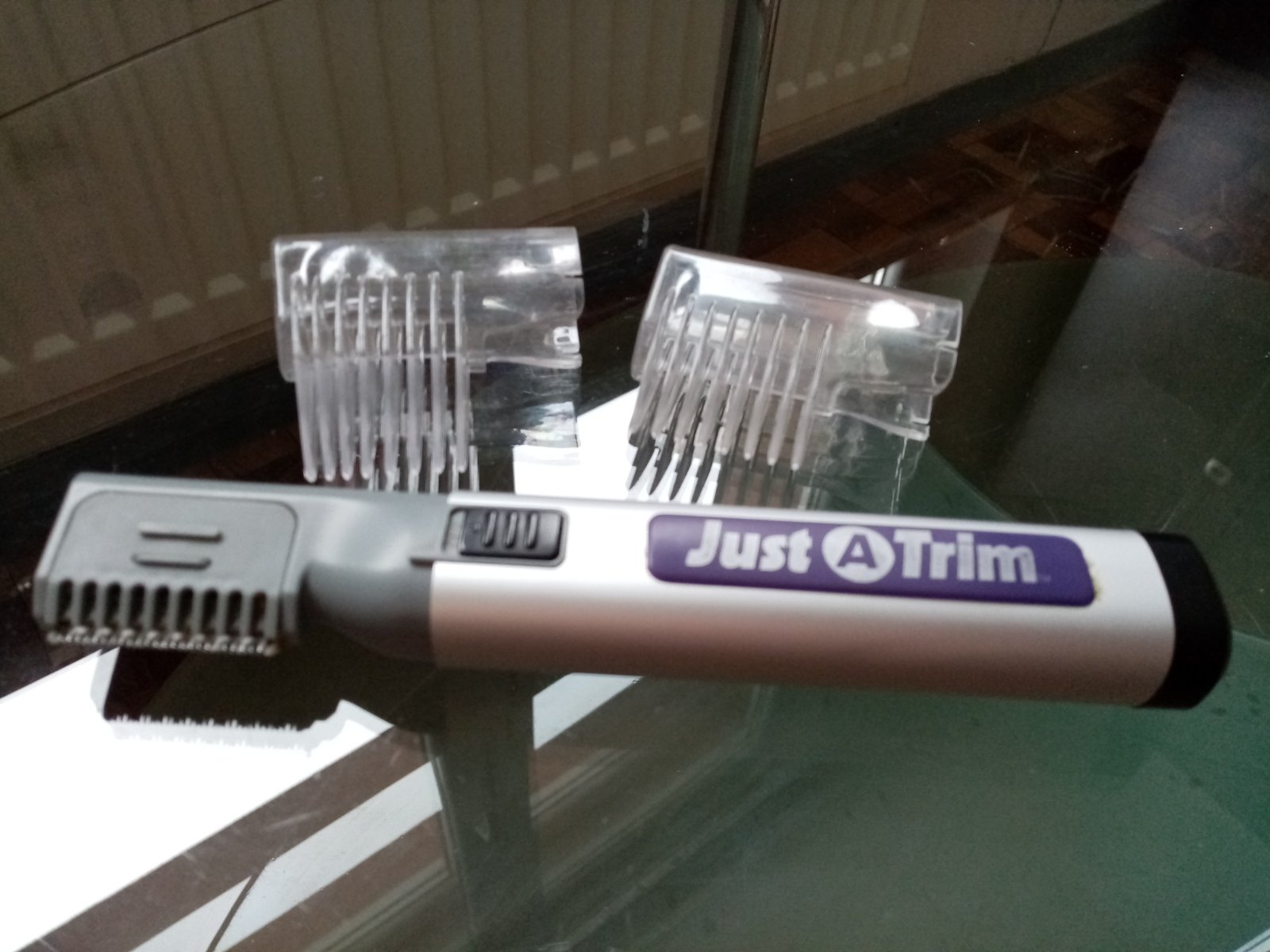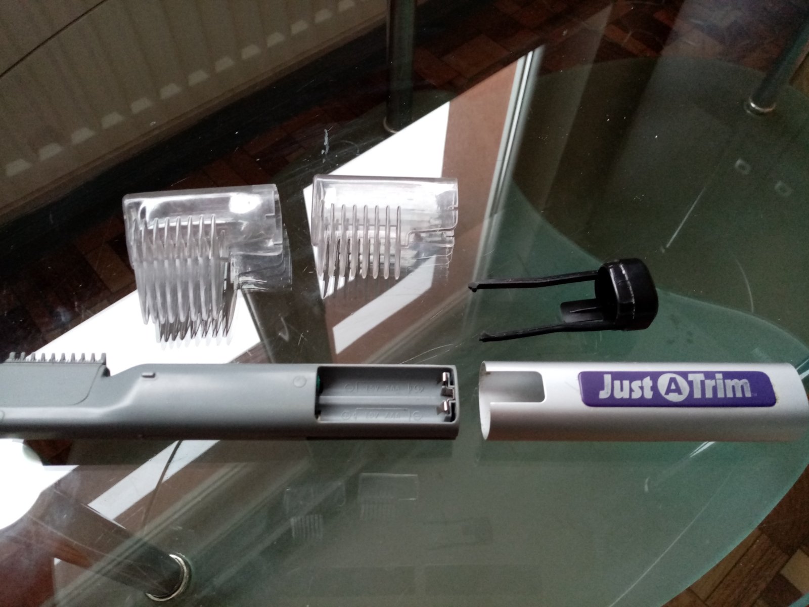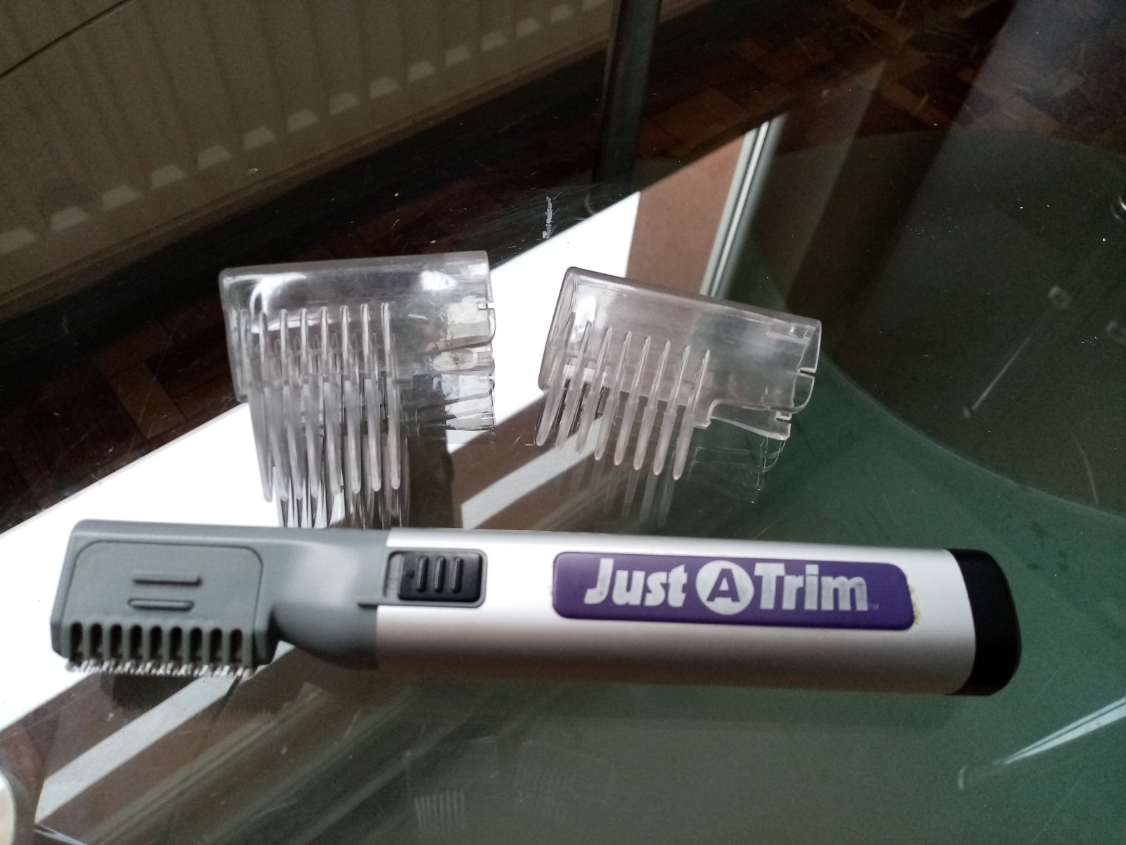 Predám tento malý zastrihávač vlasov Just A Trim, strieborná farba – výhodou je prevádzka na 2x AAA (mikrotuškové batérie).