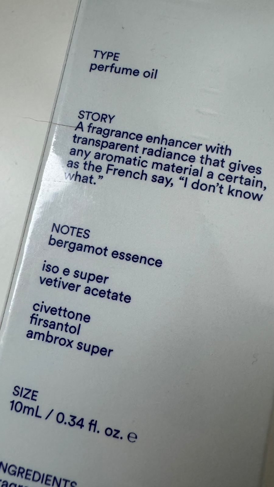 „I Don't Know What je úžasný nástroj pro každého, kdo si rád hraje s vůněmi. Tento parfém samozřejmě můžete nosit samostatně jako velmi moderní a úžasně transparentní aroma. Zároveň jej ale také můžete používat v kombinaci s jakoukoli jinou vůní, kterou vlastníte. I Don't Know What totiž není klasický parfém. Spíše by se dal popsat jako tajná směs ingrediencí, které parfuméři používají ke zvýraznění hlavních tónů parfému. I Don't Know What je unikátní vůně, která vylepší vše, čeho se dotkne.“ – D.S.