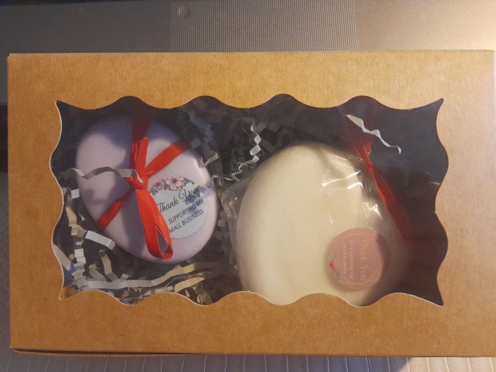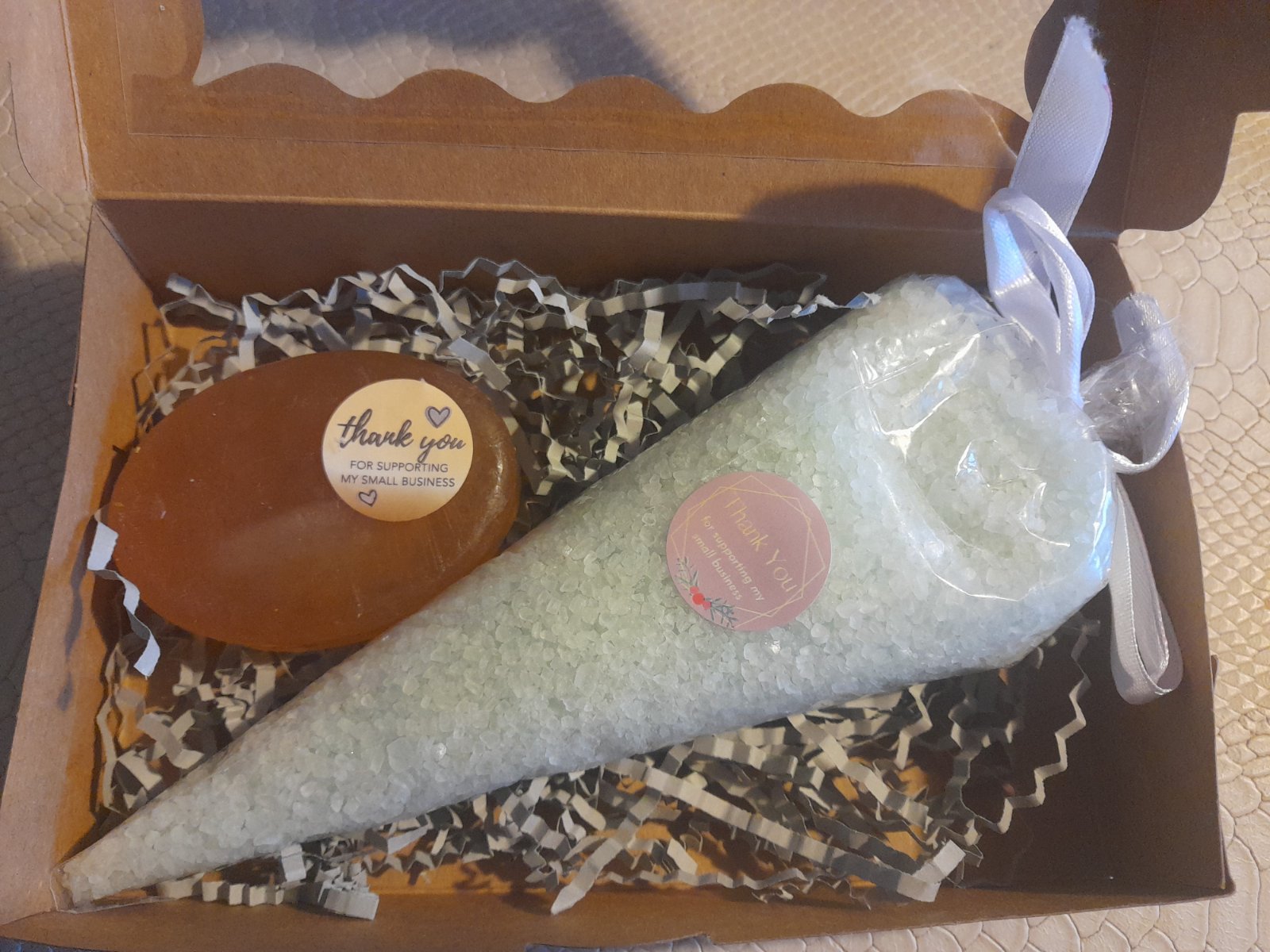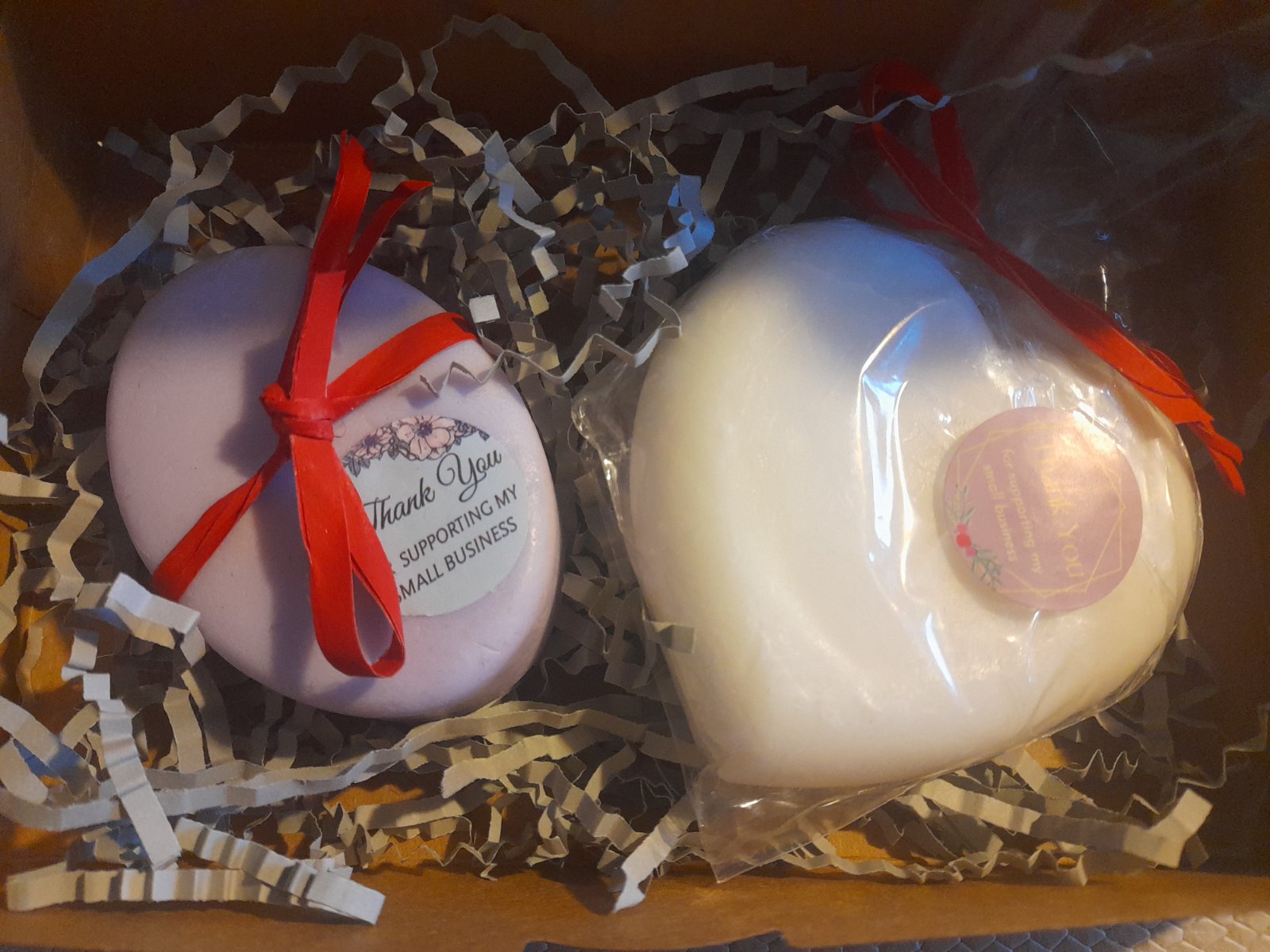 Darčeková krabička na Valentina, na den matiek, pre kolegyňu,alebo pre potešenie... bud je ako mydlo a tuhý šampon na vlasy,alebo mydlo a sol do kupela. Rozne vone a farby.