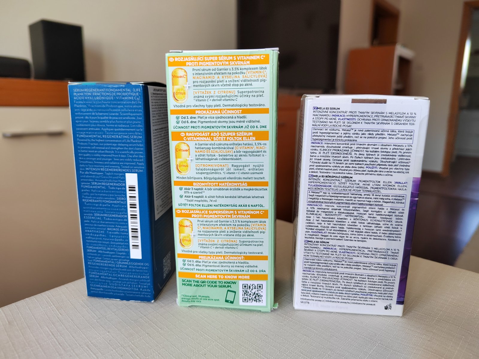 BIOTHERM sérum, Garnier sérum, La Roche MELA sérum