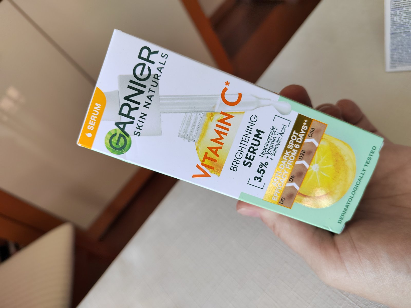 Prvé sérum od Garnier s obsahom vysoko koncentrovaných aktívnych látok [3,5 % niacínamid + vitamín C* + kyselina salicylová] na zníženie viditeľnosti pigmentových škvŕn a podpory tvorby kolagénu.
