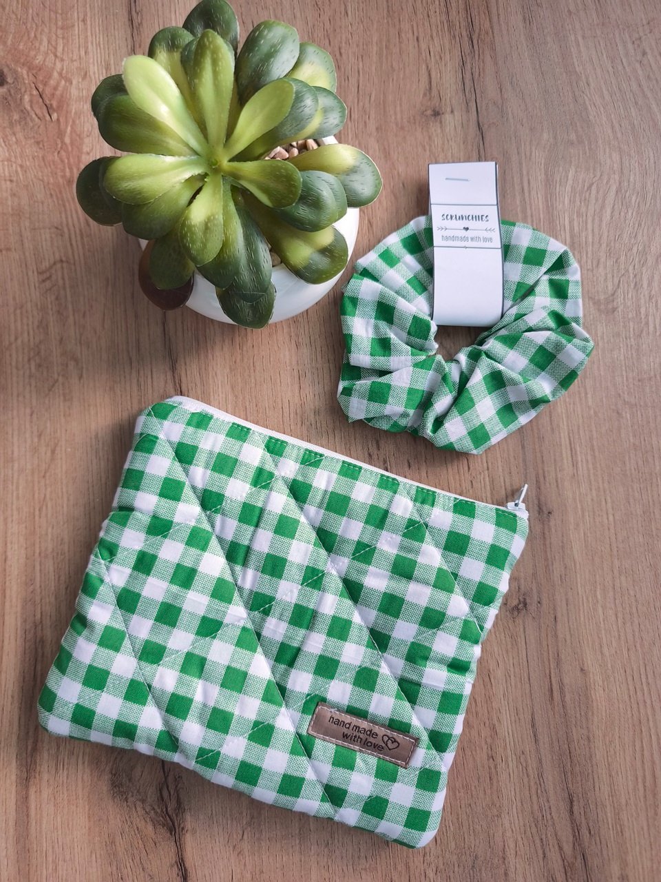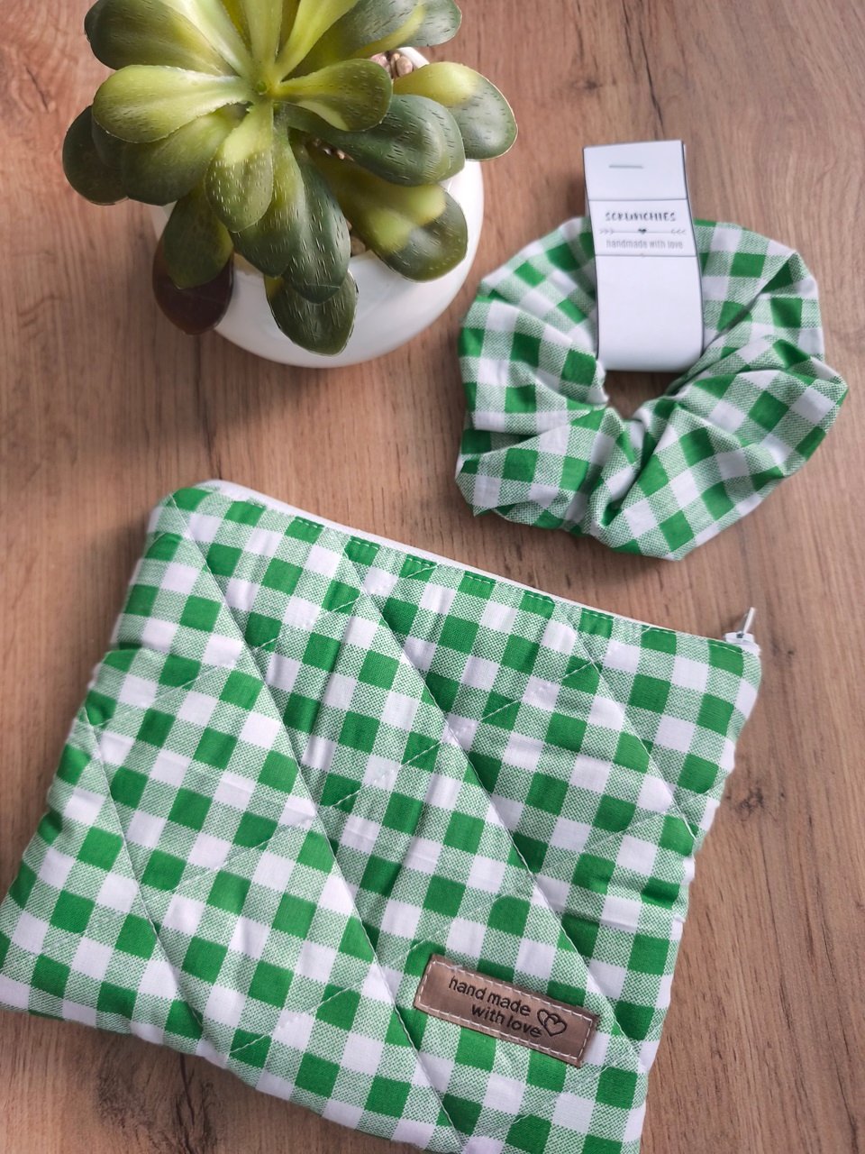 K taštičke je aj scrunchies gumička z tej istej látky ktorú máte vždy s taštičkou po ruke .