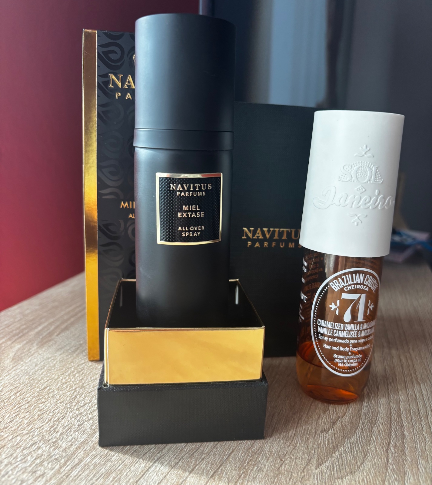 Navitus miel extase, sladko gurmánsky telový sprej+ SDJ 71 zostatok viď foto.