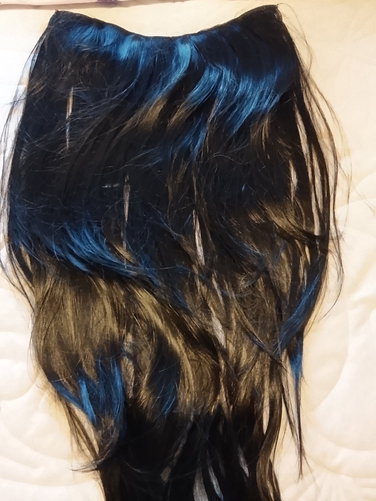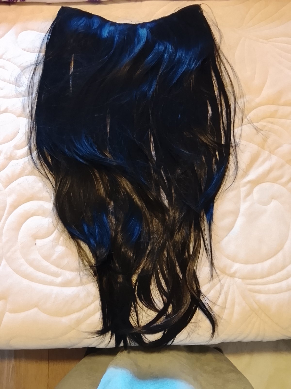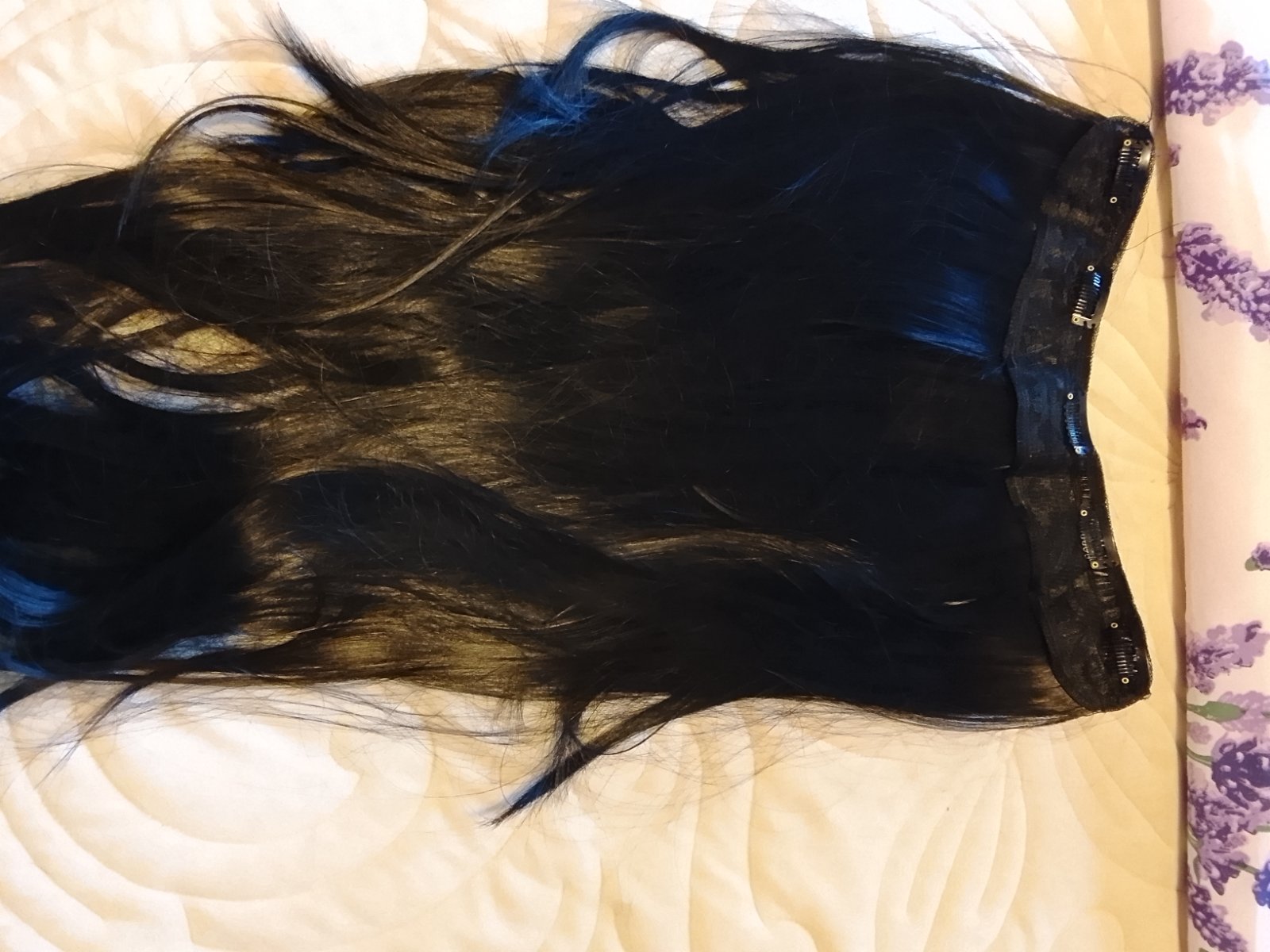 Nevhodný darček..vlasy na predĺženie alebo zahustenie na 5 klipov tzv.ryvhlopas ..vlasy sú čierne a do postupna zostrihané..je to 100 kanekalon ktorý sa neleskne a dajú sa žehliť aj natáčať .