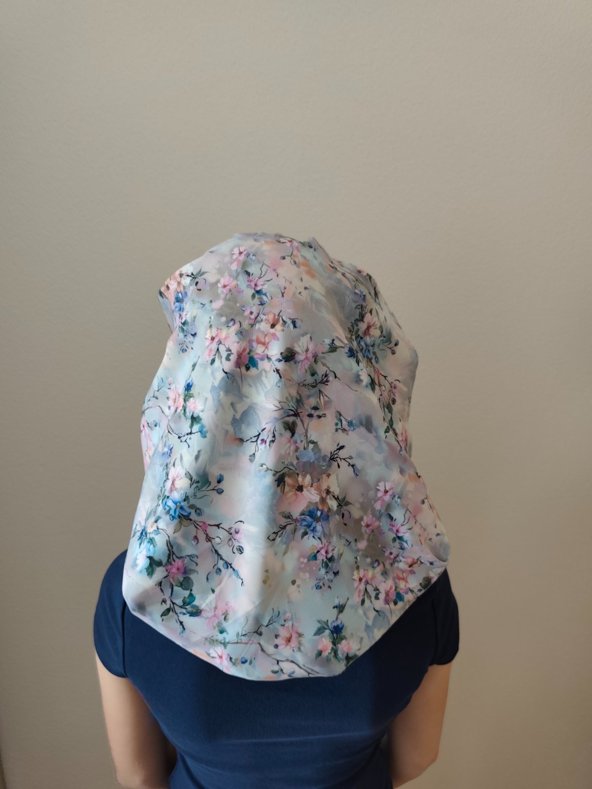 Bonet je ušitý je z umelého hodvábu, je dvojvrrstvový - jedna strana je jednofarebná a druhá vzorovaná.