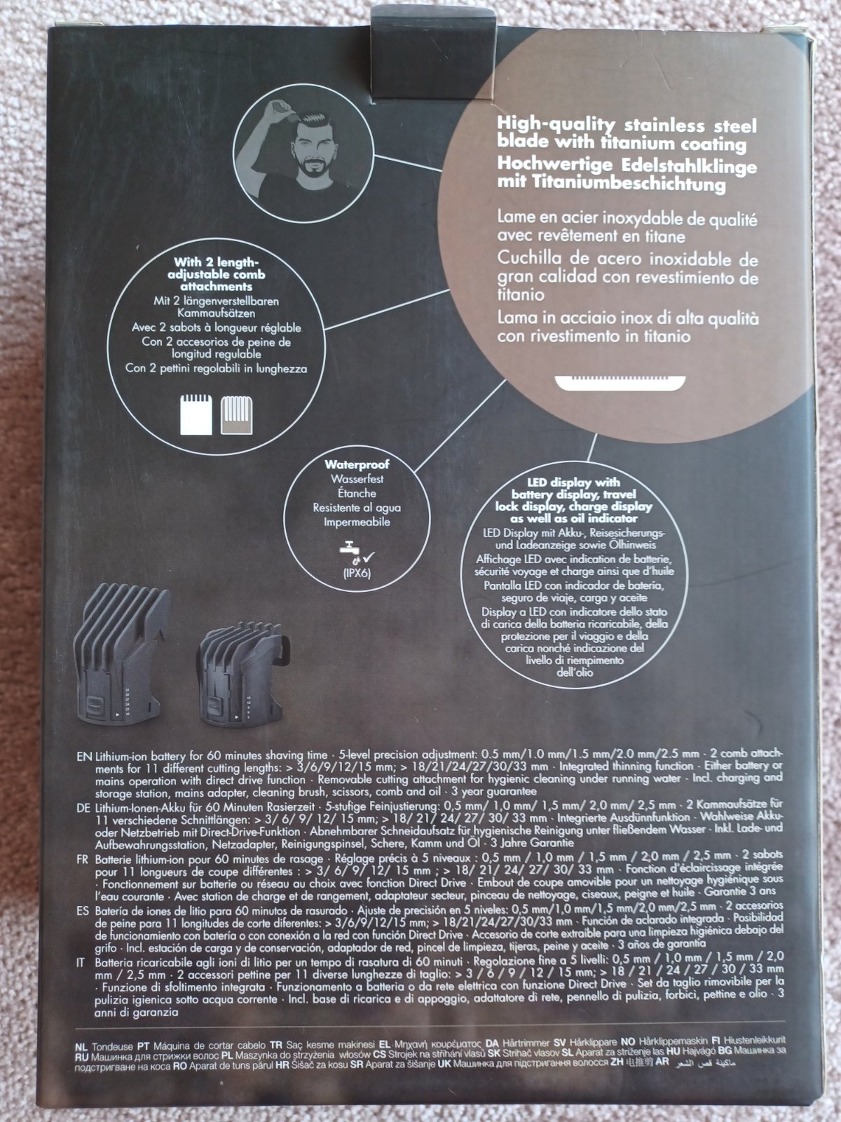 10 stupňové nastavenie dĺžky: 2 dĺžkovo nastaviteľné hrebeňové nadstavce: 1-12 mm, 15-27 mm