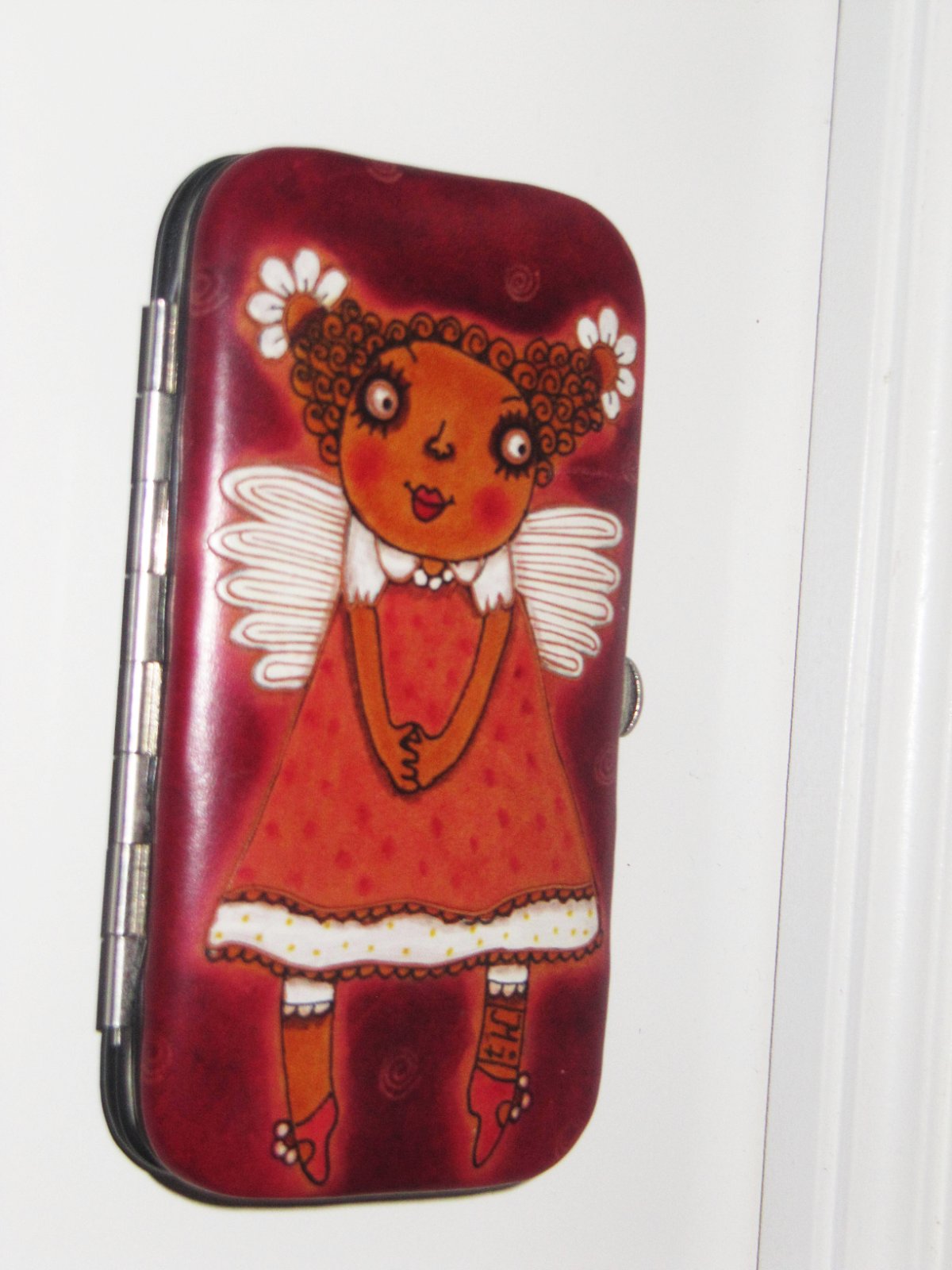 Mám na predaj kožené, ručne maľované puzdro anjel na manikúru českej značky Bambas. Pravá koža. Vnútri sa nachádzajú kožené tri remienka a miesto na pilník. Puzdro obsahuje nové nožničky. Ostatnú manikúru som si z puzdra vybrala. Predáva sa puzdro, len s tými novými nožnicami. Veľkosť zavretého puzdra je výška 12 cm a šírka je 6,5 cm. Poštovné je 3,50 eur platba vopred na účet. Je možný aj osobný odber.