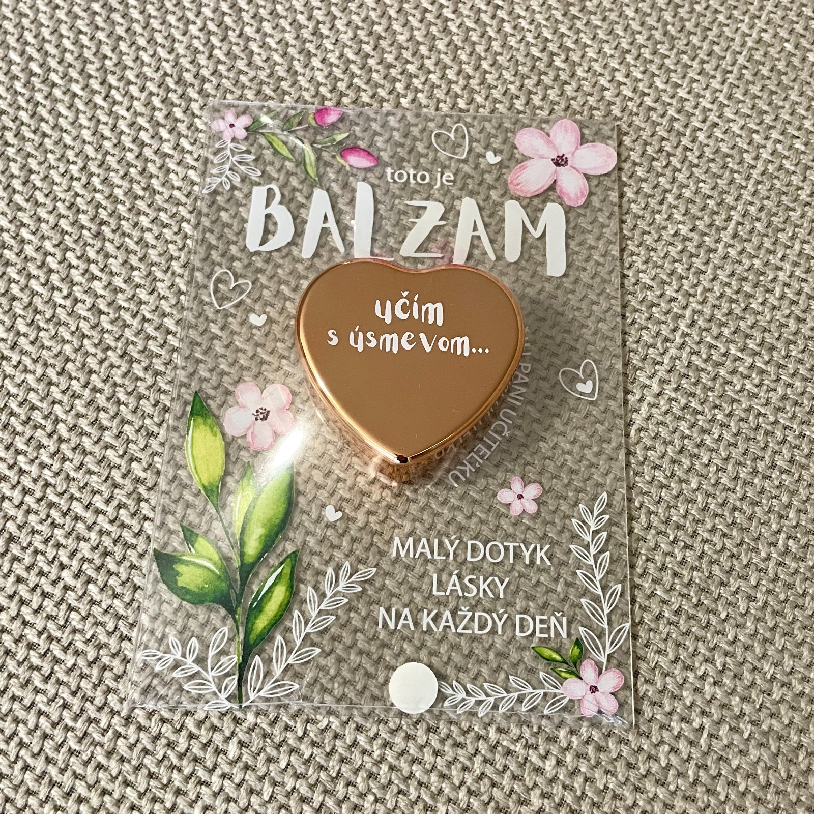 Darček, ktorý zahreje pri srdci a zároveň zjemní pery. Balzam je pripevnený na transparentnej darčekovej kartičke. Perfektný darček pre pani učiteľky, asistentky či vychovávateľky. Malé ďakujem s veľkým úsmevom.