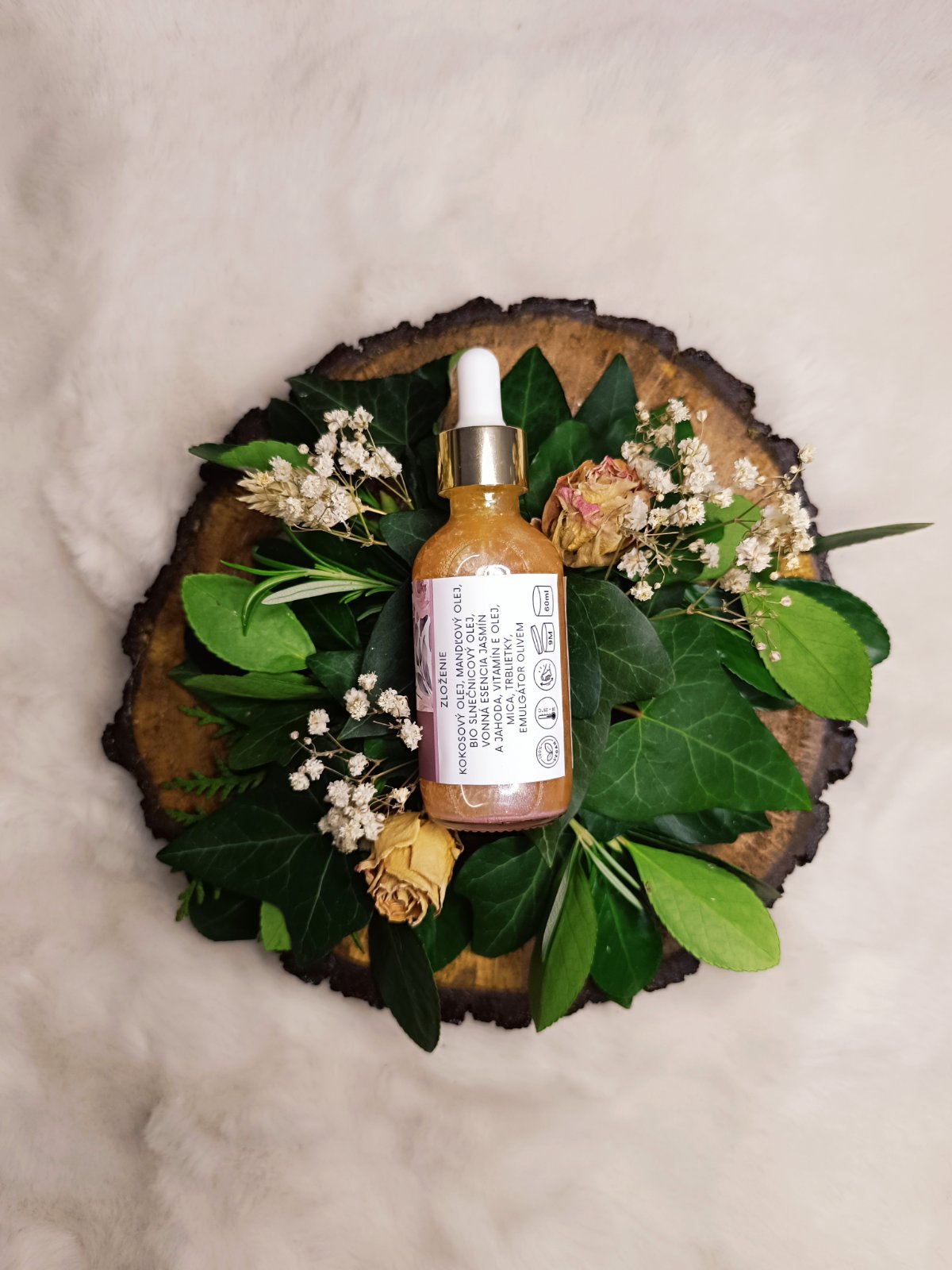 Tento telový olej z kolekcie Dream Glow, s jemnou vôňou jasmínu a jahody, rozmaznáva pokožku a dodáva jej svieži, hravý pocit. Telový olej obsahuje micu a jemné trblietky, ktoré prirodzene rozjasnia pokožku.
